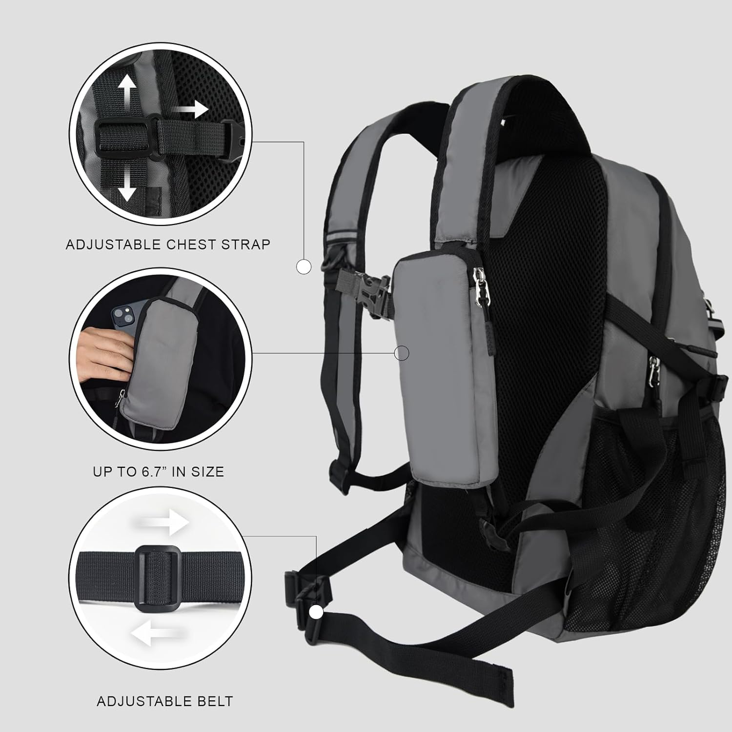 This small hiking backpack is a game-changer! Lightweight yet surprisingly roomy, it fits all my essentials for day hikes and city trips. The comfy straps and handy phone pocket make it super convenient, while the sleek grey design looks great. Perfect for both men and women who want a durable, functional pack without the bulk. Love it!