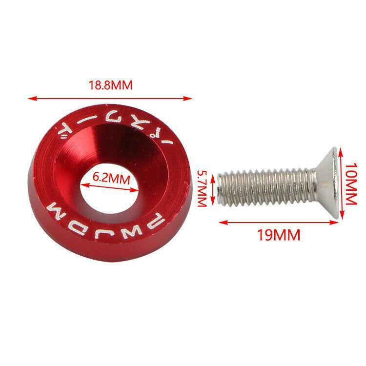 20Pcs Red CNC Billet Aluminum Car Engine Washer Bolt Screws Bay Dress Up Kit M6 Description This listing is for 20 pieces of fender washer in red. These fender washers are made from high quality CNC billet Aluminum with Anodized technology for the best finished and durability. The Logo is etched onto the washers last. This fender washers will replace any bolts with M6 heads ( 6 mm diameter of screw ). These washers and bolts can be used in places such as: fenders, bumpers, headlights, trunk, license plate frame, and anywhere else they will fit. Feature: Condition: 100% Brand New Color: Red Quality: 20 PCS / Set Material: CNC billet Aluminum Anodized Size: Universal replaces bolt with M6 heads ( 6 mm diameter of screw ) Packing: 20 x M6 Screws 20 x M6 fender washers eBay Cross Border Trade powered by ChannelEffect