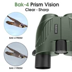 Binoculars 20X25,with 16mm large eyepiece,20X25 binoculars provide high definition without a color-changed or blurred image. The 20 magnification boasts a viewing field of 399ft at 1100 yds,and delivers large and clear details. Compact binoculars,lightweight,BAK4 prism.Multiple layer coated aspherical lenses elements for light reflection and minimal distortion, better image brightness, contrast and quality, even in low light condition. The binoculars provides brighter,clearer images and more comfortable observation for you. Because of 99.68% Light transmission, You can easily get bright, contrast images, and non-chromatic aberration. Easy to Focus,Compared with other large and heavy binoculars,This compact binoculars fold up for easier placement in a pocket or backpack and can be carried around as they weigh just 0.5lb. moderate size for both 8-12 yrs old and adults to use. Made of shockproof and soft silicone, it can protect your and your ' eyes. Low Light Night Vision,the external non-slip rubber armor of the binoculars can absorb shock while provide a firm grip, offering you excellent user experience.Based on this our binoculars also provide low light night vision. Waterproof binoculars,Daily Waterproof fog-proof body with rubber coated finish, durable and portable for outdoors, even suitable for hostile environment. These small binoculars are used for various activities, such as bird watching, hiking, hunting, sports and other "on the go" activities.
