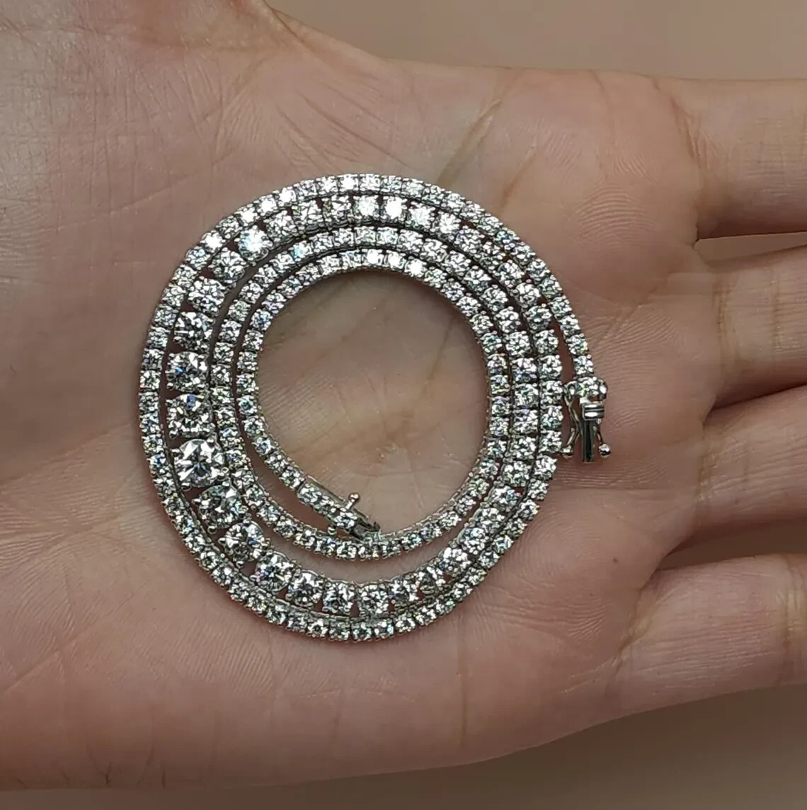 Free eBay listing template designed by dewiso.com Pot of Jewels 14K White Gold Over 20Ct Round Cut Lab Created Diamond 18" Luxury Tennis Necklace for Women 925 Sterling Silver 20 Ct Diamond Women Men's Tennis Necklace Welcome to Pot of Jewels Buy With Confidence from A Trusted Seller Note to buyer All International buyers are responsible for all tax, duties and customs fees. The images uploaded will not match exactly with the Original products as the images are Photoshop. **What is 925 sterling silver?** 925 silver means the silver have 92.5% Pure silver in it. no matter hardness, shine, antioxidation is the most Reasonable content, Is the international recognized High quality Jewelry. **Why the 925 silver jewelry will become black after wear a long time? Silver and the sulfur in the air have a react if not protect well. (no water is better). Silver and the toxin in your body have a react be black. **How to handle the black silver jewelry? Use silver clothing to clear it.--the best and good way, No water is the better. ** Why some 925 silver jewelry plated 18K White Gold? To protect the silver color loss color and make the jewelry looks more shine and bright. Special Care The White/Yellow/Rose/Black Gold Plating on this item can be effected by many elements. We advise removing this ring when being exposed to any type of substance or chemical. This includes, but not limited to: perfume, hairspray, water, lotions, cleaning products, etc. Payment :- We accept payment via Payoneer only. You can also pay using your credit card, via Payoneer, by using Payoneer as a guest. Payment is required within 3 days of the sale of an item. Shipping:- Orders are shipped within 5 to 7 business days after the payment is received and the size of the products (if any). We will send you an email to confirm the outgoing date and give you the estimated arrival date at your address. Please note that if you pay for expedited shipping, the handling time for the order is stands 5 to 7 business days. Whenever the item ships, It will ship by the expedited service, if you have paid for it. Business days do not include Saturdays, Sundays and Federal Holidays. Terms of Sale For Returns - We offer an unconditional, no questions asked 100% money back policy for a maximum period of 30 Days, starting from the day you have received the item. If you find the product damaged or not as described on the listing, we are happy to refund your payment once we received the item. It is that simple! The only condition is that the item must be returned unused, unchanged, undamaged and including the complete packaging, documentation, tags, etc. Shipping charges are not refundable. Buyers pay the return shipping Exchange option is not available. About US We cater to Domestic as well as International clients with equal ease. Our first and foremost concern is quality that we provide to our customers. We have a dedicated team of craftsmen’s whose perseverance and hard-work maintains the quality required for Gold, Silver, Alloy and Brass jewelry by our customers. We can manufacture Silver with Moissanite products as well as Silver-CZ products with equal ease. We have state of art machinery to match the customer’s quality requirement. We prepare product on orders basis and delivery is on time. Contact US If you have any questions, concerns or inquiries about this item or any other item listed on Pot of Jewels Brand please contact us through the ebay messaging system. We answer all messages within 48 hours, usually earlier. Feedback We request our valued customers to leave us a feedback once satisfied with the transaction as we are always depending on reviews from you and always need your assistance. We also request you to contact us for any kind of issues before leaving a negative or neutral feedback after the transaction. We will try our absolute best to resolve any problems that you may have. Please contact us through the ebay. If you are satisfied with our item and services, please leave us a Positive Feedback with a 5-star (*****) on the ebay Detailed Seller Rating system, which will help us to serve you better. Thank You & Visit Again !!