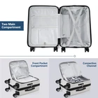 Product Features Luggage is made of premium ABS hard shell material, which is lightweight, flexible and has strong wear resistance and impact resistance. 20 inch carry-on luggage size: 22 x 13.8 x 9 ", complies with airline regulations. Portable carrying case size: 11.8 x 11.8 x 6.7 ”. Perfect suitcase for short trips, business trips. The front pocket compartment can be opened for easy access to personal items and electronic devices while on the go. Compared to traditional luggage, this suitcase can be opened from front compartment to main compartment, making it convenient for you to use in any tight space. Carry-on luggage comes with a 3-dial TSA approved lock for security. TSA lock with USB charging port(power bank not included), so you can charge mobile device on the go. Double wheels are more durable and can withstand greater pressure. 360° spinner wheels are easy to maneuver and adapts to various road conditions. Whether pushing or pulling, it moves easily. TPE soft handles on the top and side of the suitcase make it easier to lift the suitcase up steps or into luggage rack. HOW TO RESET THE TSA COMBINATION LOCK 1. The lock is set to 0-0-0 at the factory. 2. Make sure the dials are rotated at 0-0-0 or any other code you've set before resetting it. 3. Use a pen or something pointed to press the reset hole adjacent to the dials. 4. Enter your new code by rotating the dials 5. Push the key button once and your code is now set. 6. Scramble the dials and test your new code to be sure the correct one is set. On Mar 2, 2024 at 00:59:26 PST, seller added the following information: