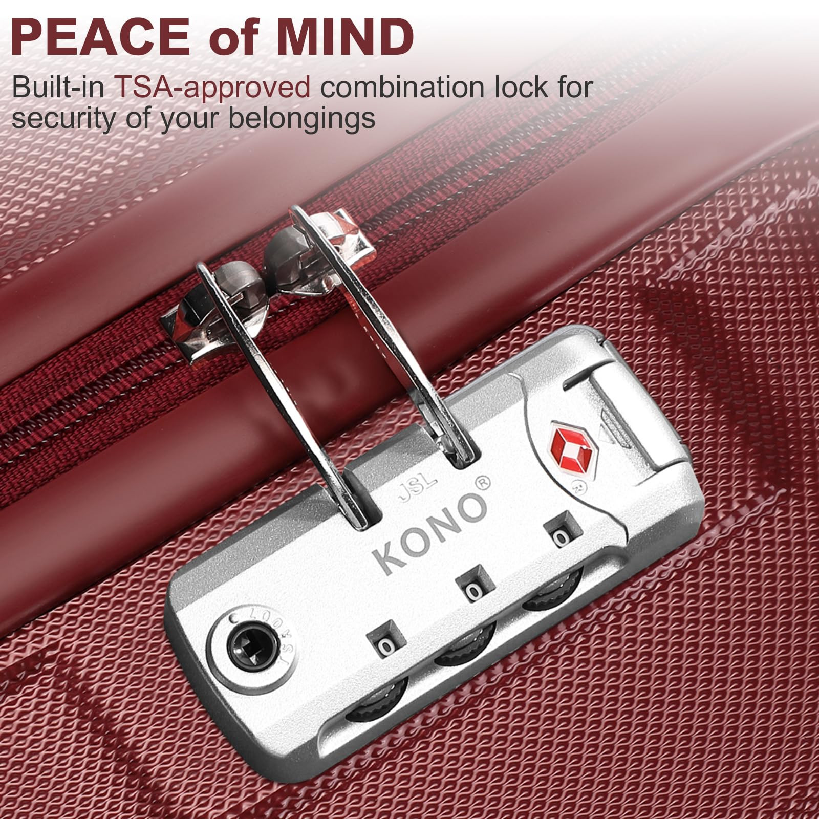 【20 INCH SPINNER LUGGAGE DIMENSIONS】Overall: 20.3" x 15" x 8.3"(including wheels and handles). Packing: 18.3" x 14.76" x 8". Weight: 5.5 lbs. CAPACITY: 35.7L. international carry on luggage maximizes our packing power and meets most carry-on size restrictions for those traveling domestically and looking to stay light. Suitable for 3-5 days trips! 【DURABLE + 2 YEAR LIMITED WARRANTY】Made from protective, lightweight hardside ABS shell, scratch and pressure-resistant, dirt-proof and waterproof. luggages go through insanely strict quality control test standards, to ensure our products can withstand the rigour of modern transport. Also offers trustful warranty service! 【TELESCOPIC HANDLE+SHORT HANDLE】Adjustable 3-level aluminum telescoping handle allows you to quickly maneuver in tight spaces and it's sturdier than most of the telescoping handle on the market. The soft side handles for easy carrying when in a hurry, or it can be really handy when lifting the suitcase with heavy weight. 【CARRY ON LUGGAGE WITH LOCK + WHEELS】Side-mounted TSA LOCK with smooth YKK zipper act to deter theft, ensuring that only you or a TSA agent have easy access to your belongings when traveling, added security and convenience. Multi-directional spinner wheels to provide 360º effortless mobility and ease on traveler's wrist, re-engineered lightweight. 【PRATICAL INTERIOR FOR WELL ORGANISED】hard shell carry on luggage designed with 2 roomy fully lined compartments. The packing straps hold your clothes in place, a zipper mesh pocket for anything you want to keep separate. Not only a perfect small luggage for yourself, also a cute gift for your families, friends, or school children.