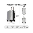 20inch Carry On Luggage,PC+ABS Expandable Suitcase with Spinner wheels TSA lock,Silver Product Details Color: Silver Size: Carry-On 20-Inch Brand: GinzaTravel MPN: A-717 UPC: 738060471422 EAN: 0738060471422 Product Dimensions: 19.7 x 12.6 x 29.9 inches Item Weight: 7.7 pounds Department: Unisex Country of Origin: China Item model number: A-717 Item Weight: 3.5 Kilograms SIZE-INCLUDING WHEELS20-inch Carry-on Luggage Size: 22x14x10 inches (All Parts). Capacity: 39L. Weight: 7.3 lbs. 24-inch Checked Luggage Size: 26x19x11 inches (All Parts). Capacity: 65L. Weight: 9.3 lbs.28-inch Large Suitcase Size: 30x21x13 inches (All Parts). Capacity: 95L. Weight: 11.2 lbs.Please select the size you would like to purchase. Lightweight and DurableCrafted from durable PC+ABS hard shell material, this suitcase is lightweight, scratch-resistant, pressure-resistant, and waterproof, ensuring that your belongings are protected throughout your travels. TSA LOCK + 4 SPINNER + SIDE HANDLEThis suitcase comes with a built-in TSA lock for easy and secure access during travel. The TSA locks are Travel Sentry Approved, allowing security officers to unlock them with a master key. It also features 4 smooth and quiet multidirectional spinner wheels for effortless movement, along with a convenient side handle for easy lifting. DETAILED INTERIORThis suitcase features a double-layered interior with polyester fabric and foam for enhanced elasticity and comfort. It includes a mesh zip pocket and elasticated design for full capacity utilization. 2-YEAR WARRANTYEnjoy a two-year worldwide warranty on our products. Contact us anytime for prompt resolution of any issues, ensuring a seamless shopping experience for you. Payment Back to Top We accept Paypal and All Major Credit Cards. Shipping & Handling Back to Top Item will be shipped FREE standard shipping in 1 business day after payment is received. Express Shipping services are available. Tracking number will be provided. Return Policy Back to Top Items can be returned for exchange or full refund within 30 days from the date you receive your merchandise. Please contact us before starting a return request, so we can resolve any issues and provide free returns if needed. Return shipping is the responsibility of buyer unless the return is a result of our mistake (i.e., your receive the wrong item). Contact Us Back to Top If you have any questions please contact us. We will respond within 1 business day or less.
