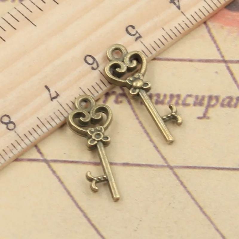 20pcs Charms Vintage Skeleton Key 21x9mm Tibetan Bronze Silver Color Pendants An