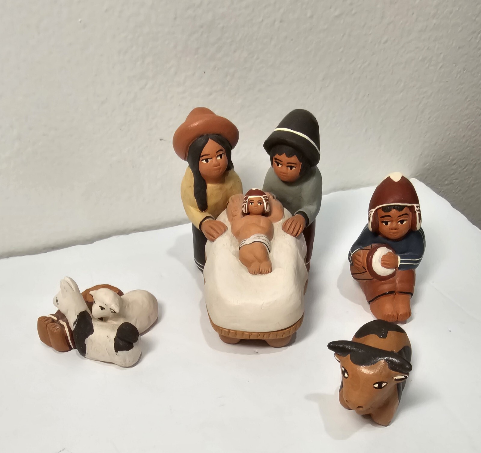 20th Century Clay Figurine Sculpture of Native Latin American Indian Nativity 16