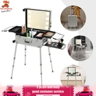 Aluminum Trolley Makeup Train Case w/ LED Light Cosmetic 21'' Make up Organizer Description Are you still struggling with not being able to pack your makeup when you go out? Come and take a look at our makeup case! It's designed for professional cosmetologists to get their makeup done anywhere, anytime. It has an extra-large main case and 4 compartments, together with the minimalist style, universal wheels, convenient invisible legs and a comfortable top carry handle to make your daily makeup work more convenient. Come and bring it home! Key Features High-quality Material: Made of fireproof board, aluminum alloy, PP with a frosted process, this product is corrosion-resistant , wear-resistant , and waterproof , ensuring your long-term use. Sorted Storage: The inner box has 4 compartments for storing nail polish, lipstick, makeup brushes, eyeliners or combs (all not included). The porous storage board holds a hair dryer, curling iron (neither included) and more to keep your belongings neatly organized. Flexible Movement: Four easy-to-move universal wheels, a telescopic trolley rod, and a side handle make it easy to get the case up and down stairs, in and out of cars and elevators. Makeup Assistant: High-definition glass, eight LED lights, adjustable brightness, and three adjustable light colors (white, warm yellow and neutral) help you see more details of your makeup and restore the true state of your makeup. Adjustable Legs Height: With the 4-gear height-adjustable support legs( 15.35-33.46in ), you can find the height that suits you best to have enjoyable makeup without back pain. Protect Your Privacy: It is equipped with locks and two keys to protect the valuables inside the box and maximize your privacy and property security. Thoughtful Design: The edges and corners fixed with multiple rivets are collision-resistant and drop-resistant , effectively protecting the product . In addition, the support feet can be easily installed when needed or removed and stored at the bottom of the case when not in use. Easy to Clean: A simple construction and smooth surface make this product easy to clean, you just need a towel (not included)and water to easily remove dust and residue. Details Comfortable Handle: The top handle gives you a secure and comfortable grip without slipping. Clear Lids: They are both dustproof and serve as a display for you to see the contents at a glance. 4 Non-slip Foot Seats: They prevent the case from touching the floor directly without getting dirty and cut up, while enhancing the stability of the product without slipping. Practical Socket and Charging Ports: They can be used to charge hair dryers, curling irons and cell phones (not included). In addition, their protective covers keep rain or other debris out. Application Professional makeup artists, hairdressers, beauticians, manicurists, beauty lovers, etc. can use this product to store cosmetics and makeup tools. It is ideal for makeup contests, wedding makeup scenarios, travel makeup, outdoor shooting, cinemas, dressing rooms, crew, tourism, beauty salons, and more. Specifications Color: Silver Style: Modern Shape: Rectangle Material: Fireproof Board, Aluminum Alloy, PP Process: Frosted Assembly Required: Yes Mount Type: Freestanding Plug Type: US Standard Voltage: 110V Wheel: Removable Universal Wheel Carrying Method: Hand-held, Hand-pulled Light Color: Warm Yellow, Neutral, White Makeup Mirror Control Method: Touch-in Light Source: 8 LEDs(Included) Legs Adjustable Height: 4 Gears(39-85cm/15.35-33.46in) Power Cord Length: 1.8m/5.91ft Drawbar Length: 40cm/15.75in USB Cable Length: 97cm/38.19in Number of Universal Wheels:4 Number of Compartments: 4 Gross Weight: 12.5kg/27.56lbs Net Weight: 11kg/24.25lbs Makeup Mirror Size(L*W): 45*35cm/17.72*13.78in Makeup Mirror Diagonal Length: 55cm/21.65in Each Compartment Size: 27*14.5*2.5cm/10.63*5.71*1in Main Case Height: 11cm/4.33in Product Height: 138cm/54.33in Package Size: 60*50*30cm/23.62*19.68*11.81in Package Included 1* Makeup Case 1* USB Cable 1* Power Cord 4* Universal Wheels 4* Legs 1* Storage Board 2* Keys 1* English Manual Notes Please note that this product does not include any other items. This product is an 8-light model without Bluetooth function. The support legs need to be tightened slightly before being supported. The service wear of the case is a normal phenomenon. In the process of daily use, please try to avoid excessive impact and drop to extend the lifespan of the product. Please use soft tools and water to clean. Please keep away from corrosive liquids. Please avoid long-term exposure to the sun. Please clear the wheels in time to maintain smooth movement. Please read the English manual completely before use. Please allow the slight color difference caused by the shooting light and the 1-3 cm error due to manual measurement, and make sure you do not mind before ordering. Payment Delivery details Terms of sales About us Contact us Payment We accept ebay payment 。 Fees such as import duties, taxes are not included in the item price or shipping costs. These charges are the buyer's responsibility. Delivery details Shipping: 2-9 working days to: USA Terms of sales We maintain high standards of excellence and strive for hundred percent customer satisfaction. Feedback is very important to us. We hope that you contact us immediately before you give neutral or negative feedback, so that we can address your concerns. It is impossible to address issues if we do not know about them! About us Your satis faction is our ultimate goal. We work hard to earn your trust and future business. Our certified technicians have tested each item before shipping. The unit comes with 1 year limited warranty on all manufacturing defects. a) If you receive a defective item, you may return it or ask for a discount. Please contact us within 14 days after you receive the package. b) What you returned must be intact and in its original packaging as re? u. Customer is responsible for ship