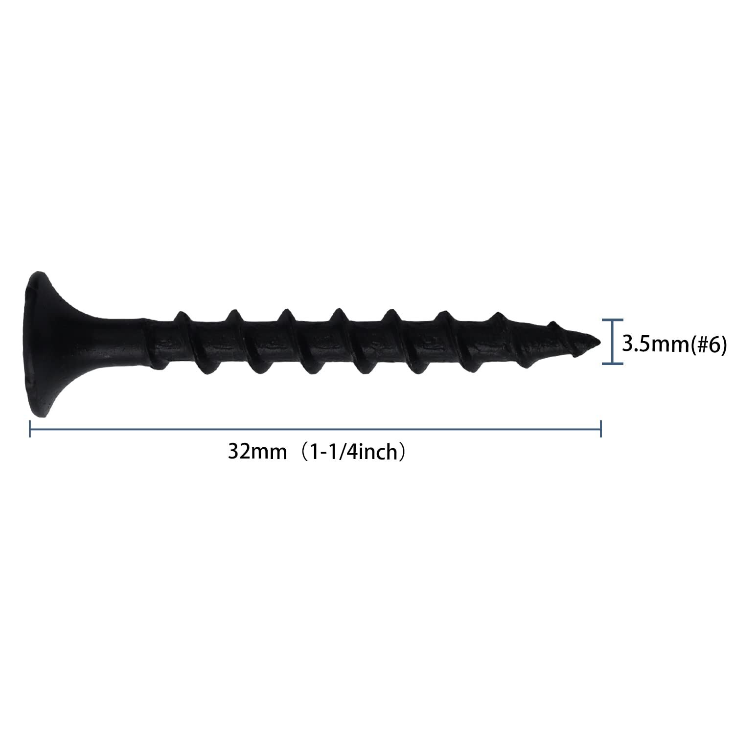 210pcs #6 × 1-1/4 inch High Hardness Drywall Screws, Black, Coarse Thread, Phillips Drive, Bugle Head, Black Wood Screws, Wood and More (1-1/4 in, 210) Include: #6 x 1-1/4” drywall screw, 210 pieces per pack. Material: Made of high hardness 1022A carbon steel to provide strong durability and finished in rustproof black phosphate coating. Workmanship: Adopting heat treated and high-precise cutting technology, the screw thread is very sharp and clear. Application: Apply to use with various projects, mainly connect between material like plank, gypsum board, composite board, soft metal, plastic. And easy to install with only a few simple tools. Ensure secure holding, not easy to slide when using. Warm Prompt: It is recommended to cover the lid after use to slow down oxidation. 【Specifications】 Quantity: 210 PCS Material: AISI 1022a Carbon Steel Color: Black Finish: Black Phosphate Head Style: Bugle Head Drive Style: Phillips Sizes: Length➤32mm (1-1/4inch) Diameter➤3.5mm (#6) 【Package Included】 210 x 1-1/4In black screws for wood 1 x Plastic bag 【Feature】 1. Meticulous workmanship: Finished in a black phosphate coating, excellent corrosion resistance and abrasion resistance, even withstand 48 hours salt spray testing. Adopting heat treated and high-precise cutting technology, the coarse screw thread is very clear and deep. 2. Reliable material: Superior material is very sturdy and not deform or break under normal use. Sharp point easily penetrates the wood. These self-tapping black wood screws are non-toxic, mercury free and environmentally friendly. 3. Single size packing, enough meets your long-term use needs. We list in US sizes and Metric (short screws, small wood screws) for your convenience. The packaging is also portative. 4. Easy to install with only a few simple tools, can be driven by phillips screwdriver or electric drill. The scientific screw twist angle allows you to drive them fast and to complete your project labor-saving. Designed for use with a variety of projects, like home furniture fasteners, other maintenance work, DIY arts and craft, home improvement, concrete screws, pocket hole screws, drywall screws, mounting screws. 【Note】 a) Please confirm the size before purchase. b) It is not recommended to store the drywall nails in a humid place. c) This item contains sharp point and small parts, please keep it away from children and babies for the sake of safety. Shipping We offer FREE shipping on all orders! We ship within Three business days of payment, usually sooner. We use a selection of shipping services such as UPS, FedEx, USPS etc. We only ship to the lower 48 states, no APO/FPO addresses or PO Boxes allowed. Local pickups and combined shipping options are not provided at this time. Return You can return a product for up to 30 days from the date you purchased it. Any product you return must be in the same condition you received it and in the original packaging. Please keep the receipt. Payment We accept payment by any of the following methods: PayPal Please pay as soon as possible after winning an auction, as that will allow us to post your item to you sooner! Feedback Customer satisfaction is very important to us. If you have any problem with your order, please contact us and we will do our best to make you satisfied. Contact Us If you have any queries, please contact us via ebay. We usually respond within 24 hours on weekdays. Please visit our eBay store to check out other items for sale! Thank you for shopping at our store.