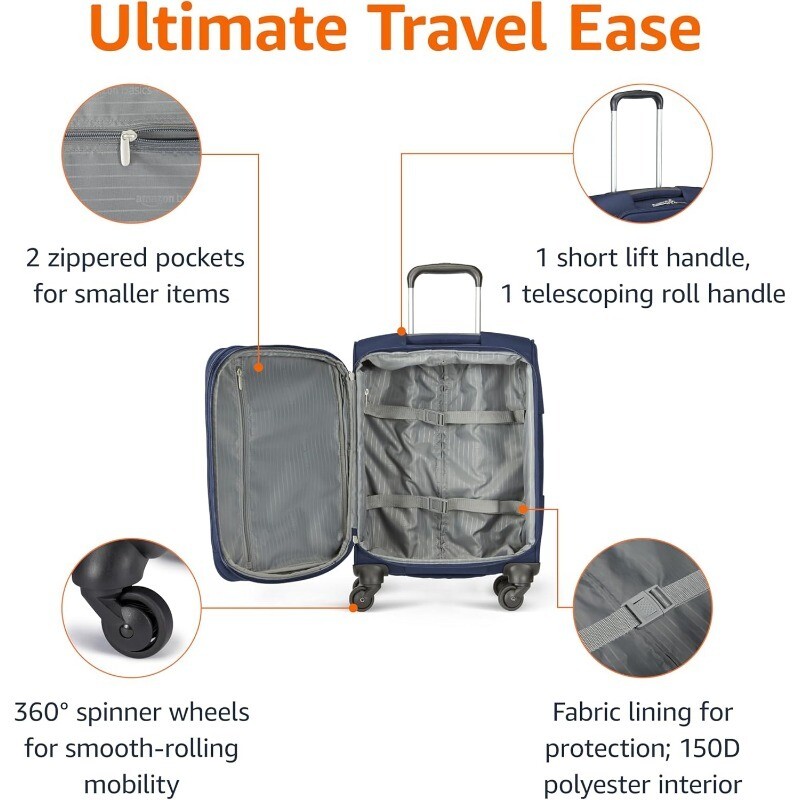 CARRY-ON DESIGN: Best for 3-7 day trips without the hassle of checking luggage; measures 14.4 x 8.3 x 20.9 inches, including wheels EXPANDABLE: Increase packing space up to 18% for added flexibility and organization SPACE-EFFICIENT PACKING: Soft sides offer flexibility for fitting into tight spaces; ultra-light 5.5-pound construction ORGANIZED INTERIOR: Keep essentials organized with two zippered pockets EFFORTLESS TRAVEL: Navigate with ease thanks to four multi-directional wheels, telescoping handle, and short lift handle