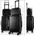 22 Inch Carry On Luggage 22x14x9 Airline Approved, Carry On Suitcase with Wheels, Hard-shell Carry-on Luggage, Durable Luggage Carry On, Jet Black Small Suitcase with Cosmetic Carry On Bag Size: Carry-on 22 Inch Color: Jet Black 22 Inch Carry On Luggage: With exterior dimensions of 22" x 13.5" x 9" including wheels, our small suitcase carry on meets the carry on luggage 22x14x9 airline-approved requirements. Interior includes large, zippered compartments with 19.5" x 13" x 9" packing dimensions. Cosmetic Case: The cosmetic case keeps smaller items like toiletries and valuables close at hand, with a zippered compartment and mesh pocket. An elastic strap keeps the cosmetic case secure on the suitcase handle. Cosmetic case measures: 6" W x 12" L x 10" H. Carryon Luggage With Spinner Wheels: Rolling carry on luggage for plane travel includes 4 spinner wheels that provide you with smooth, gliding 360 movement, a telescoping handle, stainless steel name tags, and TSA lock to secure your belongings. Tech-Friendly: The quick-access front compartment includes a padded laptop pocket, padded iPad pocket, and power bank pocket that can be integrated with the exterior USB port to charge your devices - BONUS insulated pocket to keep food cool and fresh. POWER BANK NOT INCLUDED. Hard Shell Carry On Luggage Set: The impact-resistant design of our luggage carry on suitcase and cosmetic case include beveled sides to deflect hard knocks and a brushed finish that reduces scratches. Enjoy hassle-free travel with carry-on luggage that works for you. On Oct 30, 2024 at 20:19:27 PDT, seller added the following information: