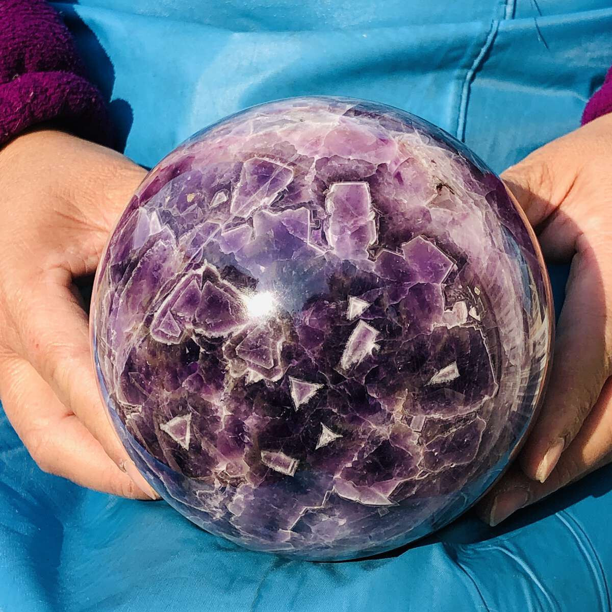 This stunning amethyst sphere is absolutely breathtaking! The deep purple hues and natural patterns make it a true centerpiece. At 2250g, it has a satisfying weight and smooth, polished finish. Perfect for meditation, energy work, or simply as a gorgeous decor piece. Arrived carefully packaged and looks even more vibrant in person than in photos. Very happy with this purchase!