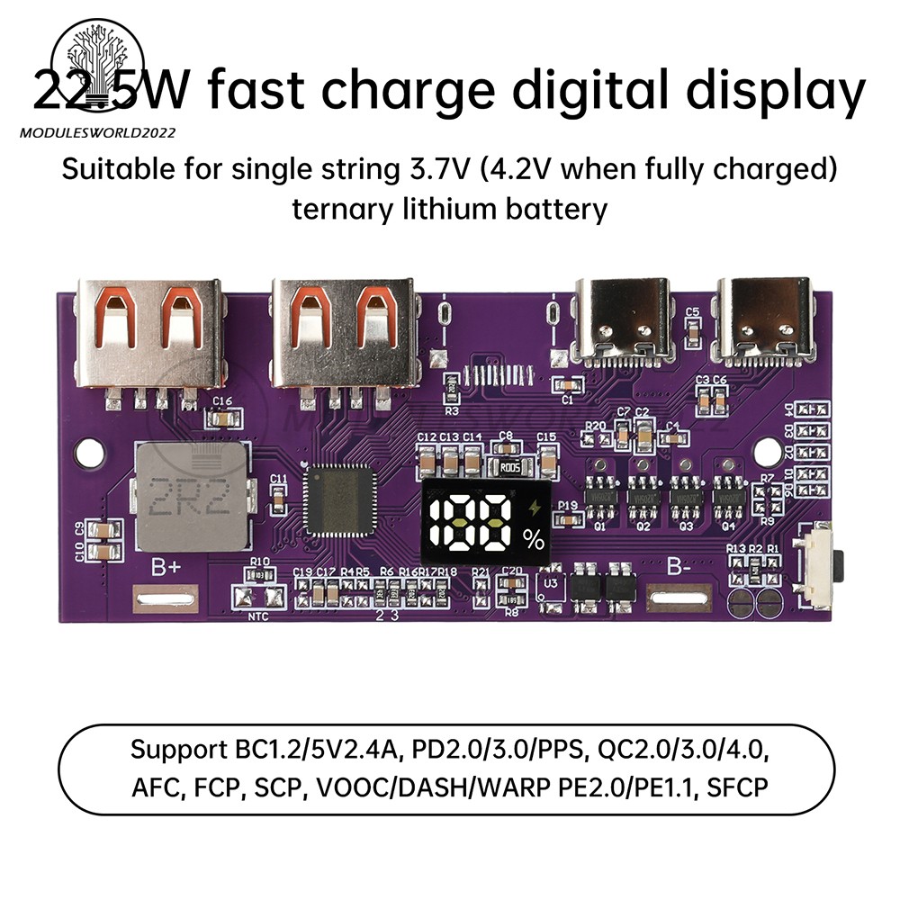 22.5W Fast Charging Module 0.96" TFT Color Screen Mobile Power Bank Motherboard