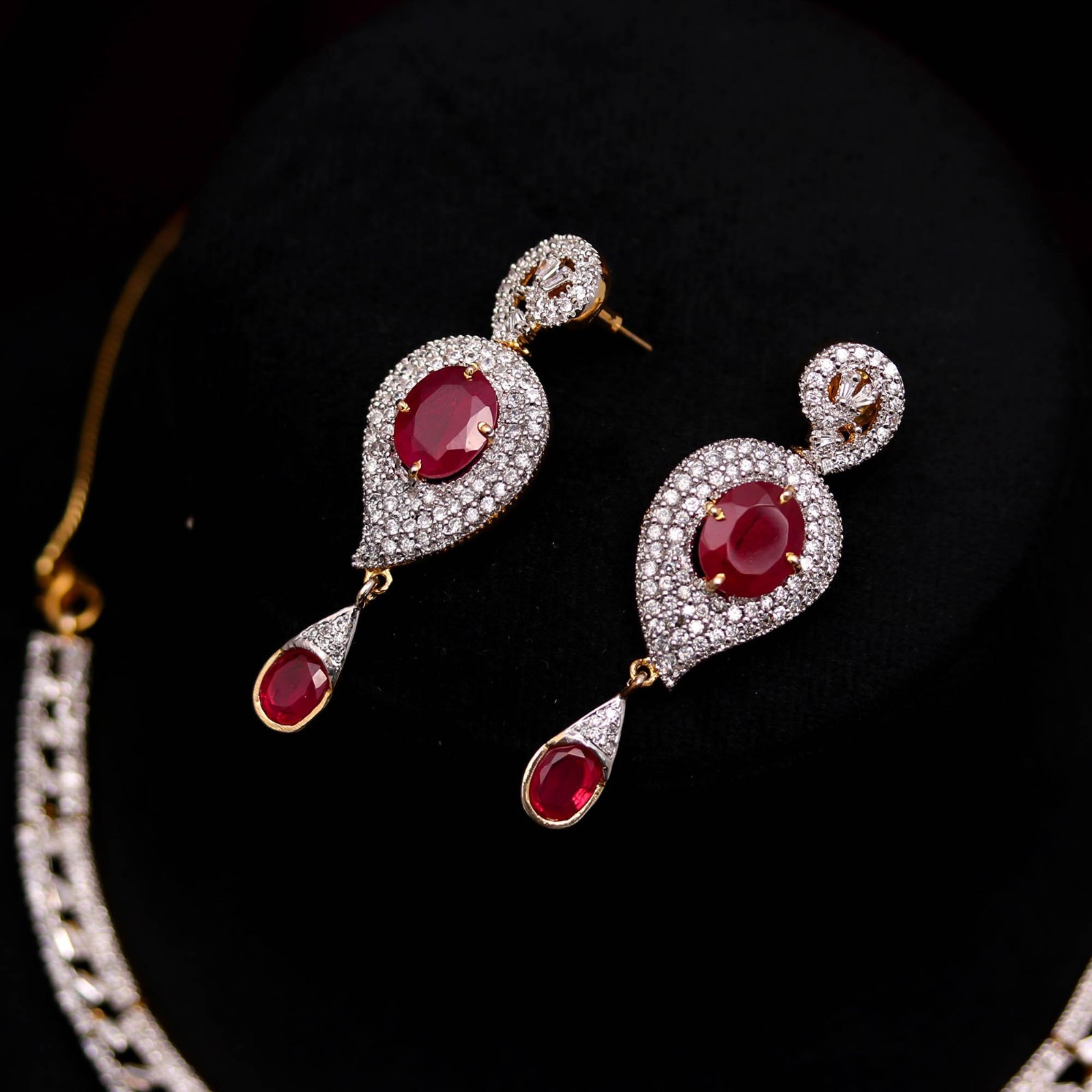 Gold Plated Ruby Red CZ Necklace Earrings Set, Valentine Gift, July Birthstone