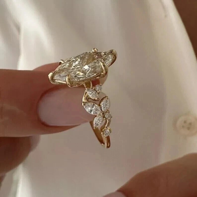 $ 66.532Ct Round Cut Simulated Diamond Women's Promise Ring In 14K Yellow Gold Plated