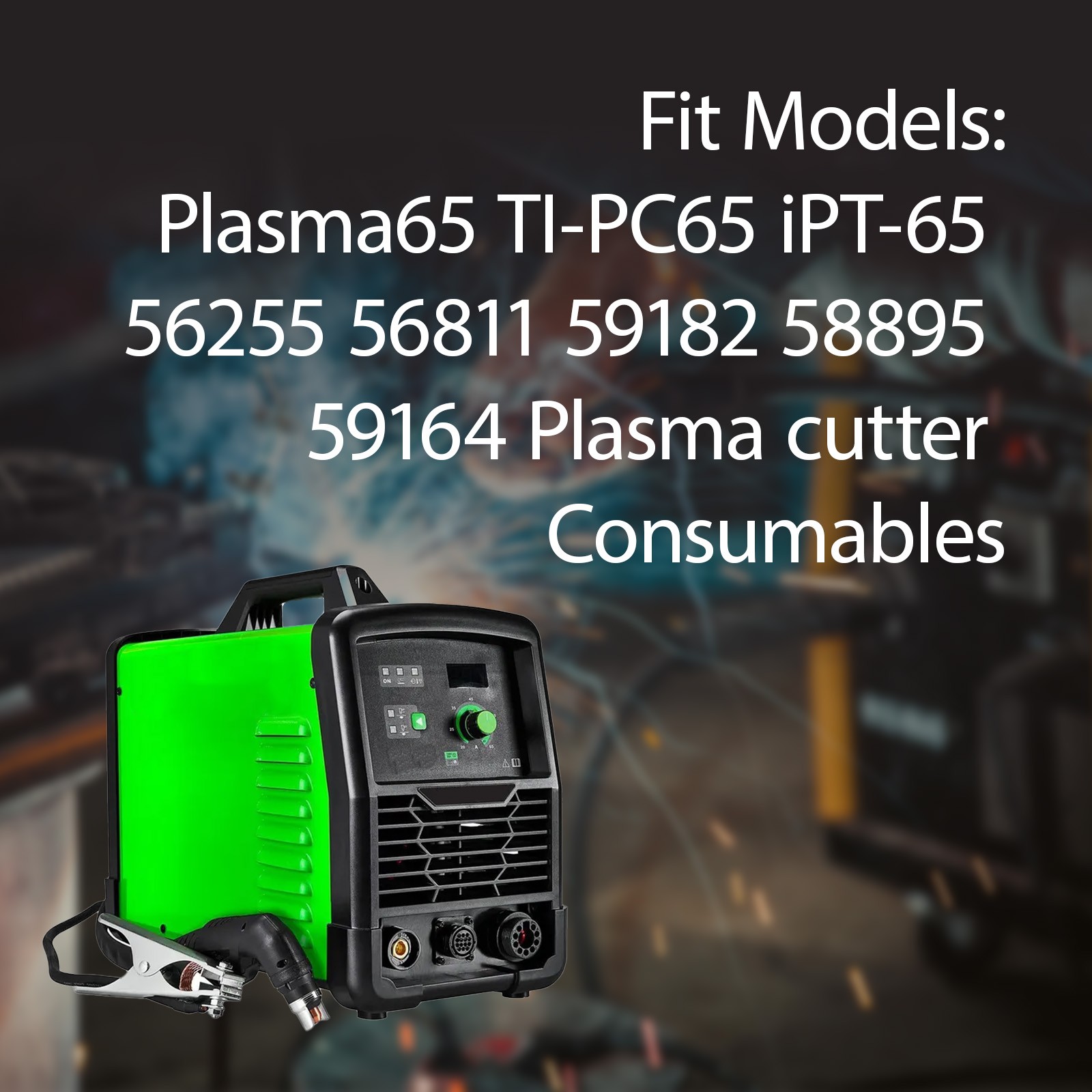 Plasma Cutter Consumable Fit For Harbor Freight Titanium Plasma65 TI-PC65 iPT-65 Product description Package list : Plasma torch TI-PC65 tips kit Replacement mod : Plasma65 TI-PC65 iPT-65 56255 56811 59182 58895 59164 Plasma cutter consumables compatible with : fits Harbor Freight Titanium Plasma65 TI-PC65 iPT-65 Plasma Cutter Torch Consumables