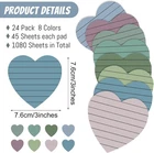 Teling 24 Pack Valentine's Day Sticky Notes Heart Lined Sticky Notes Self Adhesive Love Memo Pads for Valentines Party Exchange Gifts Office Home School 3x3 Inch(Bright Color,Classic) About this item Portable Size: you will receive a package including 24 pads heart sticky notes of the same shape but different in 8 colors, 3 pads of each color, and each pad of sticky notes is approx. 3 x 3 inches; And there are 45 sheets sticky notes in each pads, enough quantity to meet your daily needs Colorful Design: these cute notepads packs come in 8 colors, including blue, light blue, green, yellow, orange, rose red, pink and purple, bright memo pads making your message more noticeable to meet your daily needs Quality Paper Material: these Valentine's Day sticky paper pads are made of quality paper, with strong viscosity and smooth writing, without leaking ink; They can be applied for several times without leaving any residue, which can keep clean and tidy Strong Adhesive: the Valentines self sticky notes have strong adhesive to make sure not falling off; They can be pasted on the wall, blackboard, computer, desktop, refrigerator and almost all other smooth surfaces, and can be removed cleanly as well Wide Uses: the Valentine's Day lined sticky notes are suitable for Galentines day party favors, office and family to stick on refrigerator, desk and other wood and plastic surfaces for leaving messages, reminding, classifying, instructions, marking and more; Please note that the place to be applied needs to be dry and dustless
