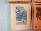 Lot of 24 vintage Christmas cards are from the 1920s to 1930s or so and are unused. There are 4 each of 6 different design cards, all with Christmas scenes, I think they are block prints, but not sure. The cards do not have any marks on them to show what company made them or where they were made. They all have the original envelopes. The cards are from the 1930s or so and are unused, but they do have some discoloration from age and the envelopes have dark areas where the glue has darkened the paper. A few cards are not flat, the horizontal edges are a bit curled.