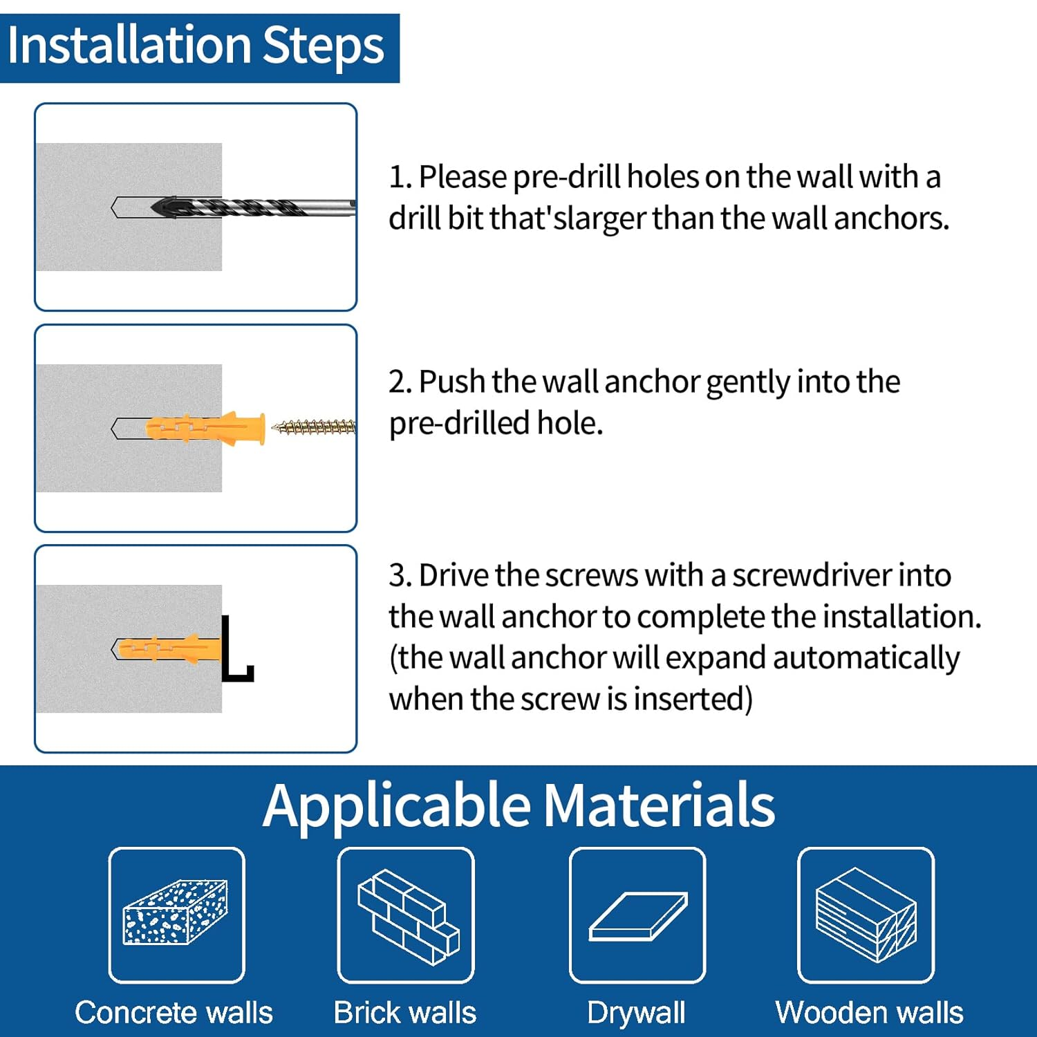 $ 14.63208 Pcs Heavy Duty Blue Conical Concrete Anchors with Masonry Screws for Walls