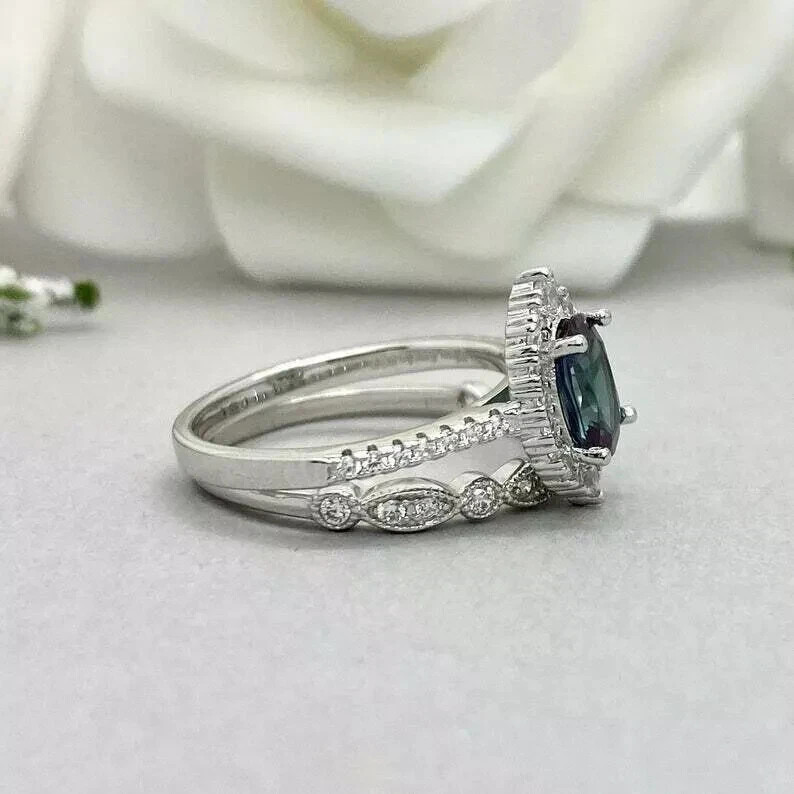 2.56 Ct Oval Cut Blue Topaz Halo Women Ring 14K White Gold