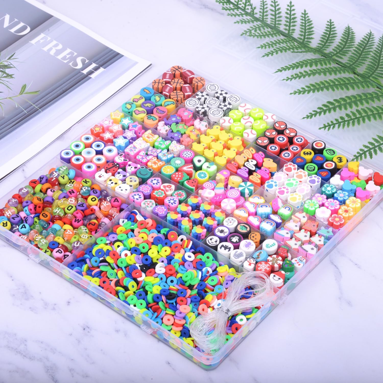 Menu Other Items Feedbacks About Us Contact Us Add To Favorites 2480Pcs Polymer Clay Beads Charms for Bracelets Making Kit Cute Fun Charms Beads Friendship Bracelet Making DIY Arts Crafts Birthday Gifts Toys for Kids Girls Age 6-13 [ Large Quantity ]: Total about 2480pcs, include polymer clay beads in 24 different styles.Colorful flat clay beads,Colorful letter beads, Transparent colored letter beads,1roll 5m elastic string. [ Suitable Size ]: The polymer clay beads are about 10mm with 2mm hole. The flat clay beads are about 6mm with 2mm hole, and letter beads are about 4*7mm with 1mm hole. All beads are separately stored in a 26 grid plastic box, which is very convenient to store and carry. [Wide Application]: Perfect for Beading, Jewelry Making, keychain, earring, necklace making supplies, phone lanyard wrist, pendants, waist beads kit, hairpin or hair braids, fashionable shoes decor and party decoration. [ Premium Materials ]: Made of high quality clay materials, The color will not fade easily and can be bright for a long time. [ Great For Gift ]:These polymer clay beading kit can be used as a holiday gift, birthday gift, friend gift and so on. There is nothing better than making jewelry as a gift by yourself. Not for children under 3 yrs:Toy contains a small ball. Not for children under 3 yrs. To be used under the direct supervision of an adult Product Description Item Specification Item model number KK001 Item dimensions L x W x H 7 x 7 x 0.5 inches Age Range (Description) Teen Color A1#Clay Beads Included Components Polymer Clay Beads,Colorful Flat Clay Beads,Colorful Letter Beads,Transparent Colored Letter Beads,Roll,Elastic String Material Clay Country of Origin China Style Modern Item Weight 9.9 ounces Size Small Model Name KK001 Seasons All Seasons Art Craft Kit Type Bracelets Making Kit Special Feature 24 different styles of polymer clay beads Product Dimensions 7 x 7 x 0.5 inches Number of Pieces 2480 SHIPPING FREE FREE SHIPPING We are always working hard to ensure your package arrives as soon as possible. Please understand that some factors like weather, high postal traffic, and the performance of shipping companies are outside of our control. We offer free shipping to the lower 48 states. We do not accept P.O. Boxes. Please provide a physical address. If you have a problem or question regarding your transaction please contact us immediately. We will work with you to resolve any problem you may have. Thank you