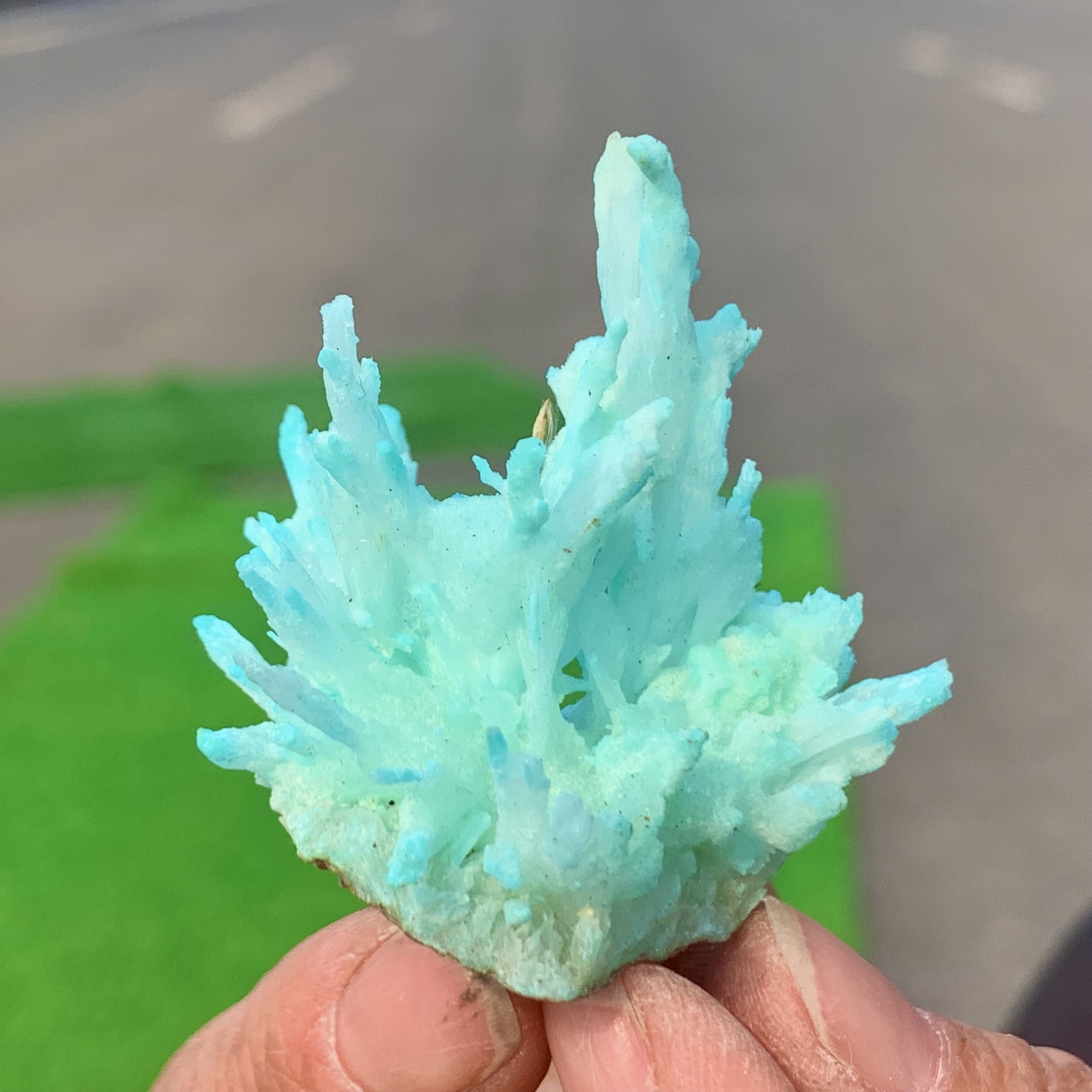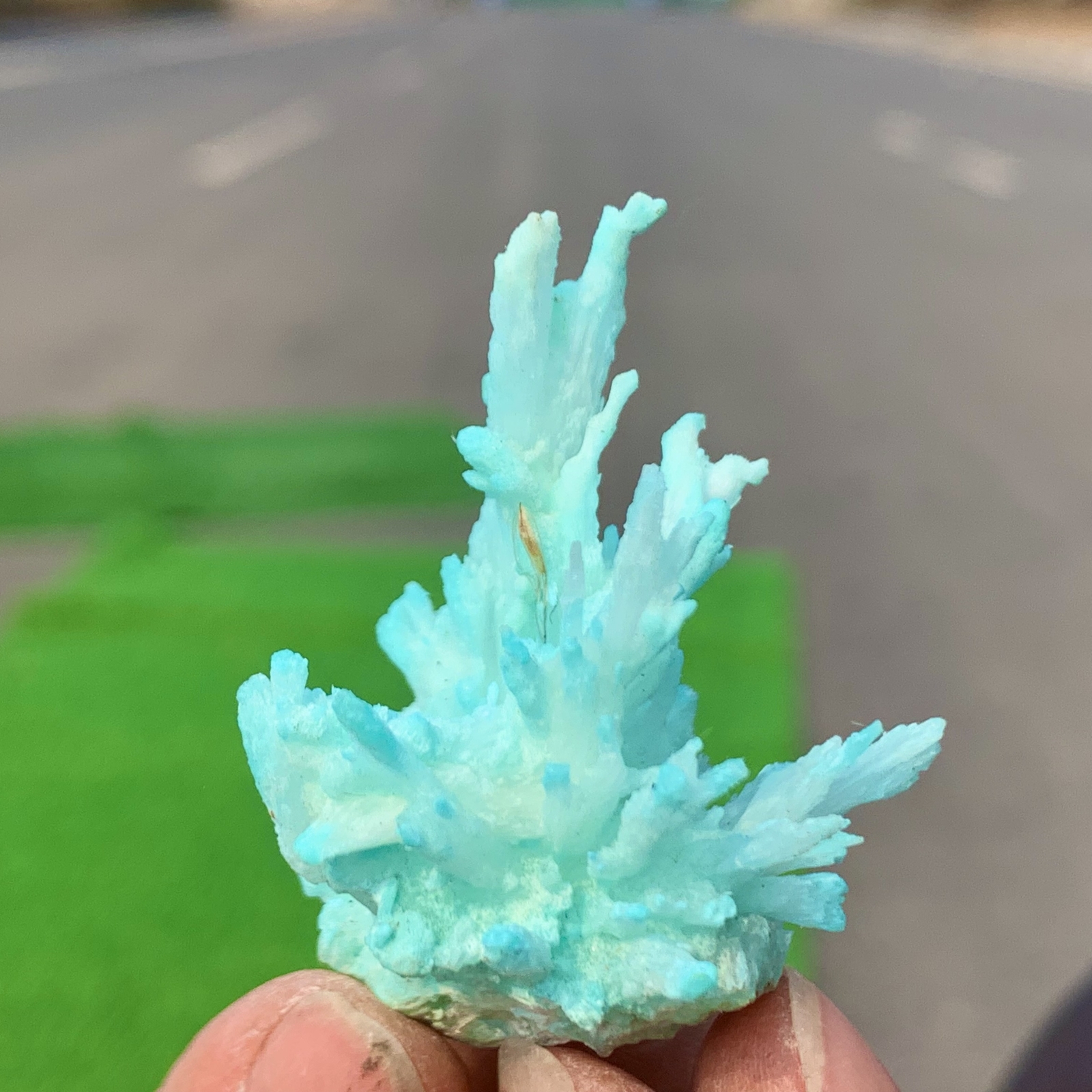 This stunning natural blue aragonite crystal is absolutely mesmerizing! The unique texture and vibrant color make it a perfect addition to any collection. It arrived quickly, well-packaged, and exactly as pictured. The size and weight feel substantial, adding to its premium quality. The seller was responsive and helpful—highly recommend for crystal lovers!