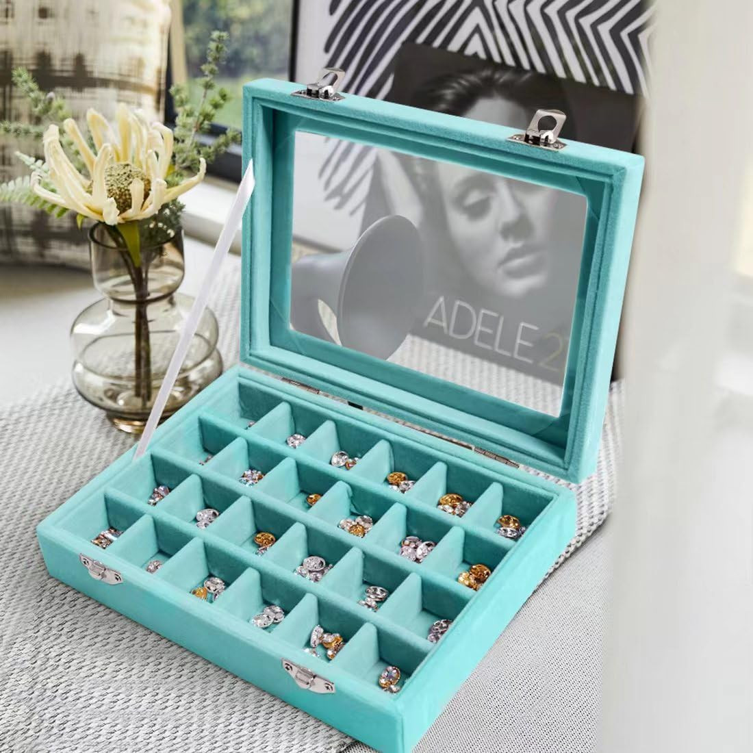 Jewelry Box 24 Grid Velvet Earrings Holder Tray Detachable Earring Light blue Product Details Color: Light blue Brand: EONGOA Material: Parcel Velvet Style: Vintage Special Feature: Portable Recommended Uses For Product: Earring Product Dimensions: 7.87"D x 5.9"W x 1.77"H Target Audience: Women, Girls Shape: Rectangular Occasion: Mother's Day, Christmas, Anniversary, Birthday, Valentine's Day Mounting Type: Table Top Inner Material: Velvet Closure Type: Snap Number of Drawers: 1 Number of Compartments: 24 Number of Items: 1 Manufacturer: EONGOA Part Number: 011 Item Weight: 12 ounces Country of Origin: China Item model number: 011 Special Features: Portable Included Components: box Batteries Included?: No Batteries Required?: No Color: Light blue Brand: EONGOA Material: Parcel Velvet Style: Vintage Special Feature: Portable Recommended Uses For Product: Earring Product Dimensions: 7.87"D x 5.9"W x 1.77"H Target Audience: Women, Girls Shape: Rectangular Occasion: Mother's Day, Christmas, Anniversary, Birthday, Valentine's Day ✨【HIGHT-QUALITY MATERIAL】: The jewellery box is made with parcel velvet. It is lightweight and provides a perfect perch for your jewellery. Comes with transparent tempered glass and integrated safety locks which ensure more security. ✨【PERFECT SIZE】: 7.87 inch x 5.91" x 1.77 inch/20 x 15.5 x 5 cm (L x W x H). This stylish Jewelry Box allows you to store and organize your jewellery on the go. It is small enough to fit in your travel bag and is specially designed to carry your jewelry on the go. ✨【MULTI-FUNCTION JEWELRY BOX】: This ring holder tray not only stores the jewellery but also protects them from abrasion, scratch and keeps them sparkling. The jewellery box is great for storing earrings, necklaces, bracelets, rings, brooches, pins. It is the ideal jewellery storage organiser for home or travel use. ✨【PRACTIAL LAYOUT EARRING HOLDER】: Multiple removable compartments for every type of jewelry, transparent design so that it displays your jewelry more clearly ✨【PERFECT GIFT】 : This jewellery box organiser box makes it the perfect gift for Christmas, birthday or anniversary presents. It can be the warmest gift for a mother, girlfriend, wife, daughter, colleague, friend or any other special woman in your life.