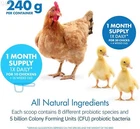 About this item 24g Probiotics for ChickensPoultry Natural Digestive System Dietary supplement A broad range blend of carefully chosen probiotic bacteria for chickens, ducks, and other poultry is HealthyGut Probiotics for Chicken & Poultry. provides your bird with complete digestive support and aids in the promotion of a healthy digestive system. SUPPLEMENT THAT IS ALL NATURAL: For chicks and adult chickens, this daily probiotic and prebiotic supplement is recommended. includes the prebiotic inulin and nine types of freeze-dried probiotic microbes; Digestible and particularly beneficial for egg layers DIGESTIVE SYSTEM SUPPORT: There are thirty servings in each HealthyGut container; Distribute one scoop for every 30 chicks (aged 0–4 weeks), 20 young chickens (aged 5–15 weeks), or 10 adult chickens (aged >16 weeks). SINGLE DAILY INTAKE: Every day, sprinkle the probiotic supplement scoops on your birds' meal; produced in accordance with human-grade standards using ingredients that have been evaluated for quality and purity; Made in the USA, this non-GMO formula PURE, SIMPLE, NATURAL: Equa Holistics is dedicated to assisting pet owners in giving their animals premium nutrients so they can live the longest and healthiest possible lives; We support careful formulae, rigorous quality control, and customer education.