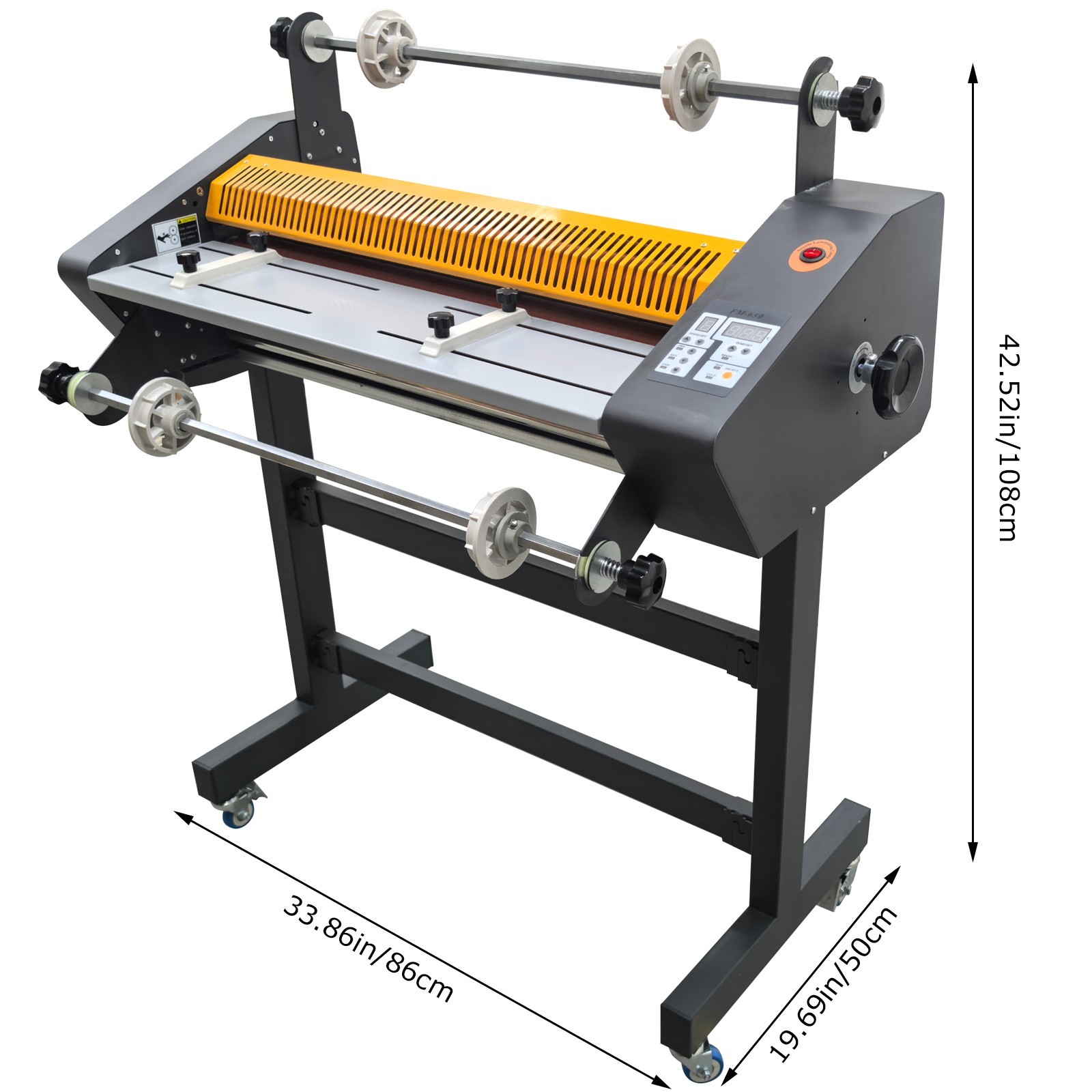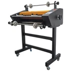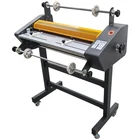 635MM/25'' Electric Double-sided Laminator Cold and Heat Laminating Machine 110V Product Overview The double-sided laminator is a professional multifunctional laminating machine specifically designed for cold and heat laminating operation. The laminating machine has a double-sided heating function, thereby greatly shortening the laminating time, remarkably improving the working efficiency and thoroughly solving the crimp problem of conventional single-sided laminating operation. The laminating machine has the efficient heat laminating capacity and the lossless cold laminating capacity, so it is an ideal choice for professional users pursuing high efficiency, high quality and operating diversity and individual uses with high requirements. Product Parameters Model FM-650 Maximum laminating width 635mm (25'') Maximum laminating thickness 5mm (0.2'') Maximum laminating speed 3000mm/min Maximum laminating temperature 170˚C Power supply 110V/60Hz Power 1600W Motor power 30W Machine size 86x50x108cm (33.86''x19.69''x42.52'') Net weight 59kg (130LB) Number of rubber rollers 4pcs Diameter of heating rubber roller 55mm (2.17'') Diameter of discharging rubber roller 45mm 45mm (1.77'') Specification of film core 1'' and 3'' Attention 1. Keep hands, long hair, loose clothing and articles like ties or necklaces away from the rollers to avoid entanglement and scalds. 2. Be sure to close the protective cover before the machine works. 3. Do not touch the cover, heating rollers and heating parts while the machine is working, so as to avoid accidents and scalds. 4. Never use any abrasive or sharp metal material to rub the roller, because it may damage the rubber roller surface. Product Features The precision operation panel is adopted to achieve intelligent control, button operation and digital display, the speed setting, temperature setting, rotation direction selection and laminating mode selection are combined into a whole, ensuring the temperature and speed can be freely adjusted, the advance/retreat/stop can be easily controlled, and the cold laminating mode and heat laminating mode can be freely selected to meet various laminating requirements. The four rubber rollers are made of thickened high-quality rubber, have smooth and flat appearances and high laminating performance. The rubber rollers are firm and durable, and are not prone to deformation after long-term use. The advanced rubber roller interior heating technology is used, so the rubber rollers are resistant to high temperature, and the heating efficiency is greatly improved. The laminating machine is equipped with a hollowed protective cover, achieving safety protection and good heat dissipation. By means of the hollowed design, the operator can observe the laminating condition at any time, hands can be prevented from being pinched and scalded by the heating rubber rollers. The protective cover can be opened and closed effortlessly, so it is convenient and practical. The paper baffles on the two sides can effectively limit and position the materials in the laminating process, ensuring paper feeding is stable and free of deviation. The paper baffles can be easily moved and fixed in the holes to adapt to different material specifications and sizes, so the practicability and adaptability are greatly enhanced, and the smooth laminating operation can be well guaranteed. The double-sided laminating switch is designed for control over the double-sided laminating operation. Lamination of the obverse side and reverse side can be accomplished at the same time through one-time feeding, so the laminating efficiency is greatly improved, the degree of automation is higher, the uniform heat and pressure are provided to ensure the stress balance, and the quality and consistency of finished products are improved. The rubber rollers can be controlled by the handwheel to be easily lifted and pressed in the working process, so the operating safety and convenience are effectively improved, and the laminating quality and consistency are greatly enhanced. The handwheel is simple in structure, low in maintenance cost and fault rate and high in mechanical reliability and achieves high flexibility, safety, durability and economy. The film rolls with 1'' and 3'' film cores are effectively supported by the film roll supporting rods, reliably fixed by the fixing clamps and properly adjusted by the adjusting knobs on the two sides, thereby ensuring the films are smoothly fed and adhere to the materials, the deviation, bubbles and wrinkles can be effectively avoided, and the good laminating effect is achieved. The universal wheels with brakes are stably installed at the bottom of the supporting frame, making the laminating machine move flexibly and effortlessly. By means of the brake design, the laminator can be stably fixed at the designated position and well adapt to different working environments, and the practicability is greatly improved. Operation Method 1. Install the film rolls on the supporting rods, and fix the film rolls properly. 2. Connect the machine to the 110V power supply with reliable grounding, and turn on the power switch. 3. Select the cold/hot laminating mode, set the laminating speed and temperature, and begin to conduct laminating operation. 4. Adjust the film rolls and the corresponding parameters according to the laminating effect. 5. Clean the machine after the laminating operation is accomplished. Application As a multifunctional laminator, the electric double-sided laminating machine can conduct cold and heat laminating operation efficiently, achieves the perfect combination between the cold/heat laminating films with 1’’ and 3’’ film cores and various materials such as paper, books, pictures, photos and documents, and is suitable for the advertising and printing industry, the art field, the education and office industry and other industries with the laminating requirements. Item Number (120122): 1 x Electric Double-sided Laminator 11
