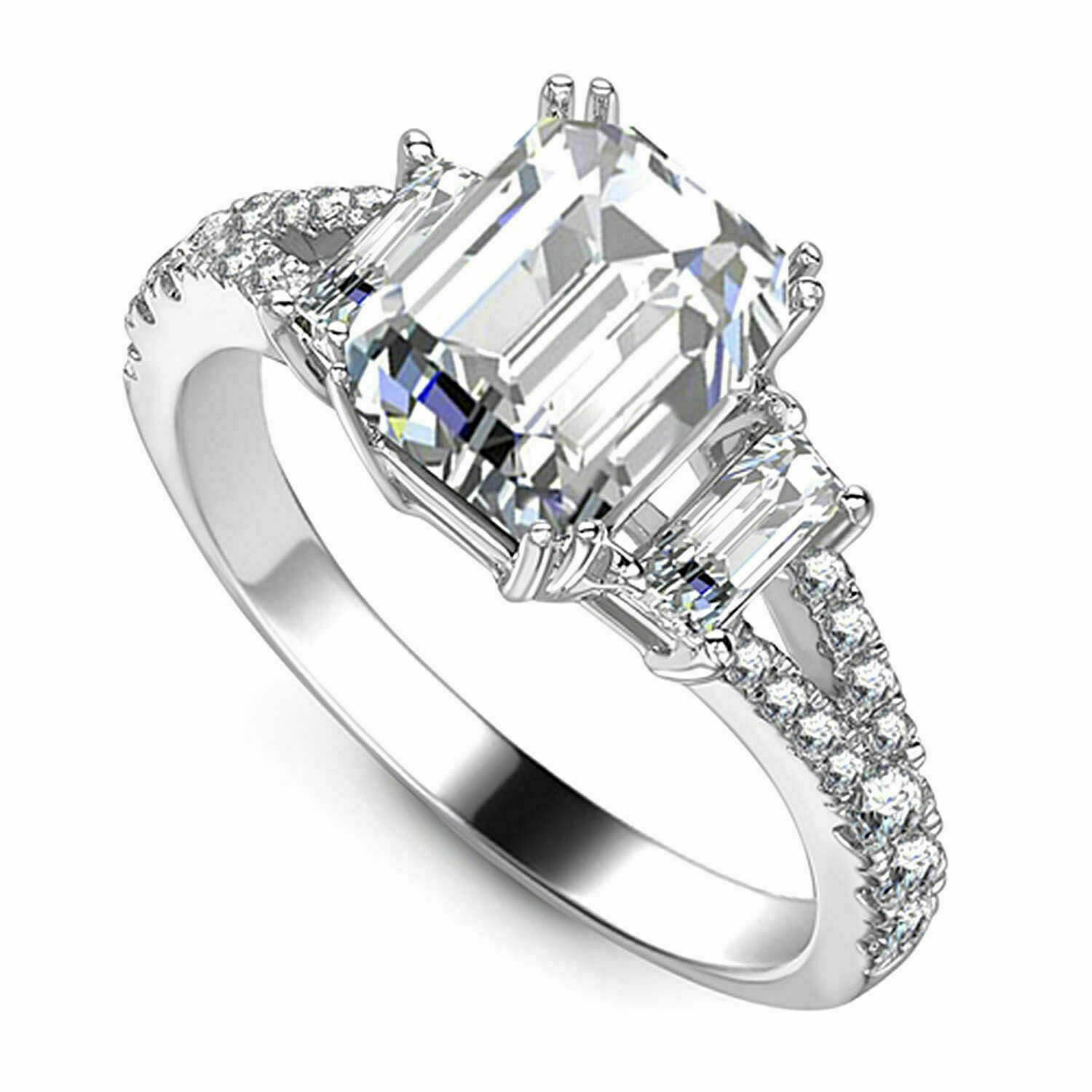 3.51Ct Simulated Emerald Diamond 14K White Gold Plated Silver Engagement Ring