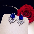 2.50Ct Simulated Sapphire & Diamond Stud Earrings 14K White Gold Plated Silver