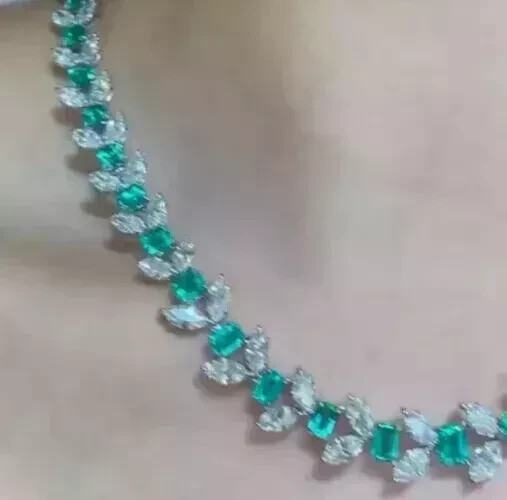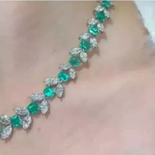 $ 169.6518CT Round Cut Lab Created Emerald Women's Tennis Necklace 14k WhGold Plated 18”