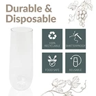 Perfect for parties! These plastic flutes look elegant and feel sturdy. They're clear, BPA-free, and the stemless design makes them easy to hold and store. Great value for a 25-pack!