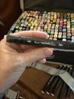 The Touch Alcohol Markers Set includes 262 colors, offering a wide range for artistic expression. With dual tips, these markers provide versatility for both fine and broad strokes. Designed for both kids and adults, this set is suitable for various art projects and crafts. The vibrant multicolor markers have a solid finish, delivering rich and bold hues for your creations. Weighing 9.39 pounds and packaged at 15.47x8.94x7.87 inches, this set is a comprehensive and convenient option for artists of all ages. This is a fantastic set of markers, but I will say that the bag that it comes with is quite cheap. As you can see, the top has been sliced. This item is new. This was done in unpacking. I feel as though the little dividers in the bottom of the packaging do not hold the markers well. Still, a fantastic set of markers for a great price!
