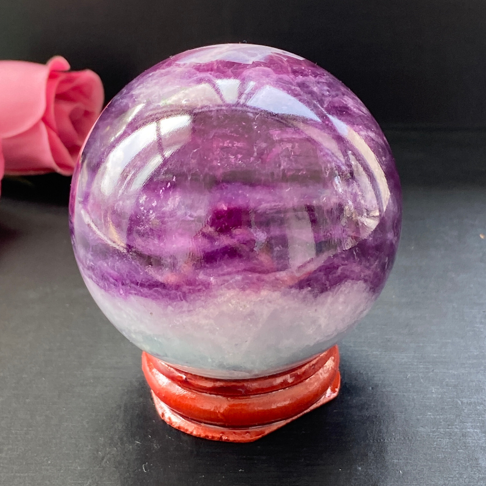Received exact sphere pictured and described in the listing. An excellent, cleanly shaped stone with a good finish polish. Colors are bold and bright. Even better in hand, than it appeared in its listing photos. Communication with the shop was good. Shipping time from mainland China very acceptable, in light of the distance traveled. Sphere was delivered in good order and perfect condition. Well pleased with my blue/green Turquoise sphere. Good job by this eBay seller.