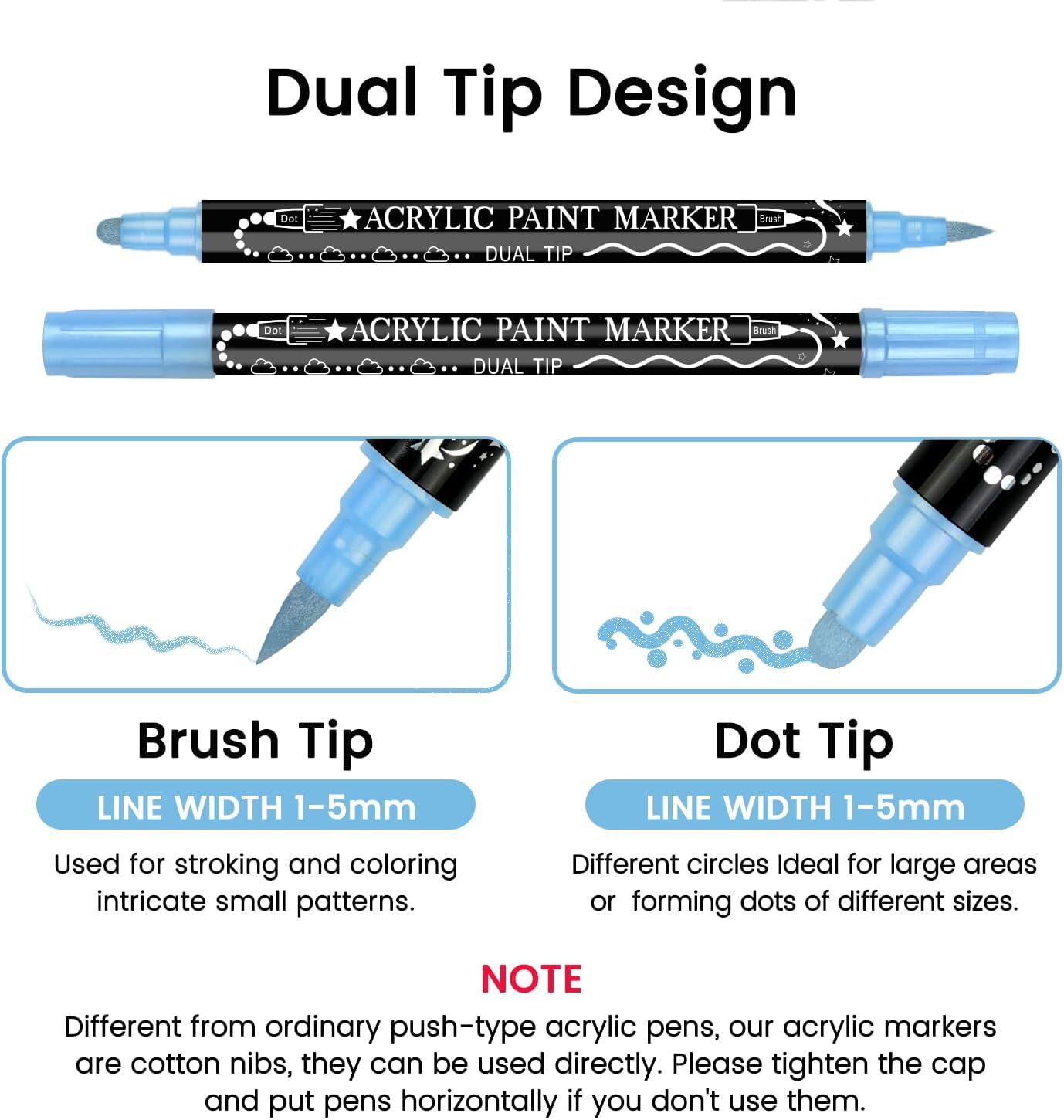 Product Description What are the characteristics of acrylic paint markers ? Non-fading and permanent: Acrylic paint markers offer long-lasting and vibrant marks that won't fade. The acrylic paint markers set contains 28 Metallic colors, It is a perfect choice to make your scrapbook, bullet journal, planner, Christmas card, birthday gifts, greeting card, or any DIY crafts projects. New professional color system to meet more painting scenarios. Draw on rocks, mirror, fabric, glass, mugs, ceramics, canvas etc. Drawnby acrylic markers are suitable for all dry surfaces that do not absorb water. Strong coverage Acrylic pens' strong, vibrant colors effectively cover various materials, making them a go-to for artists, designers, and DIY. Waterproof Acrylic paint markers resist water and moisture, keeping your marks and designs clear and vibrant in wet conditions. Non-Toxic Safe, easy-to-use acrylic markers paint pens offer Kid a colorful way to explore creativity, favored by parents and educators.
