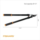 The Fiskars 28" Steel Blade Tree Trimmer Garden Bypass Lopper is an ideal choice for big cutting tasks. The unit's fully hardened stainless-steel blades are designed to provide a cleaner cut for living, green growth. The blades are also replaceable and can cut branches up to 1-1/2 inches in diameter. Additionally, the blades' non-stick coating on this branch cutter ensures smooth and clean cuts. Durable steel handles feature soft, cushioned grips and a shock-absorbing bumper for all-day comfort. Designed to help you transform the backyard, Fiskars lawn and gardening tools are equipped with smart technologies and award-winning, ergonomic features that make it easier and more enjoyable to perform your own lawn care. From pruning shears, lawn mowers, weeding tools, and tree cutters, we take a holistic approach to develop garden equipment that reflects hours of immersive study, research, and validation, resulting in gardening supplies that outperform the competition and feel like a natural extension of your body. The Fiskars 28" loppers weigh 2.5 lbs. IDEAL BRANCH TRIMMER: 28" Steel blade garden bypass lopper that glides through up to 1.5" thick branches for easy cuts; Works well for trimming tree branches to maintain your yard and garden, and to encourage overall plant health and appearance MAXIMUM POWER AND PRECISION: Low-friction blade coating makes smooth cuts, reduces gumming, and enhances rust resistance; Non-slip grip handle allows for more control of clippers LONG-LASTING AND RELIABLE: Steel blades stay sharp through heavy use and provide excellent durability for lasting value; Fiskars pruning shears and tools are built to last and backed by a full lifetime warranty QUALITY GARDEN TOOLS: Designed to help you cultivate a better garden, Fiskars garden and yard tools are equipped with smart technologies and award-winning, ergonomic features that make it easier and more enjoyable to transform your outdoor space INCLUDES: 1 Fiskars Manual Bypass Lopper measuring 28” long, 2.9LBS; Makes clean cuts on branches up to 1-1/2" in diameter