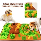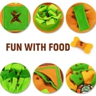 This is a 28x18 inch medium snuffle mat designed for dogs, cats, and rabbits. It is a washable puzzle toy made of fabric, with a treat dispensing feature. The snuffle mat is suitable for extra small (XXS) to extra extra large (XXL) sized dogs. It is a fun and interactive way for pets to use their sense of smell and forage for treats. Made in China.