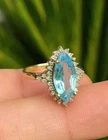 2Ct Marquise Simulated Aquamarine Halo Engagement Ring 925 Silver Gold Finish