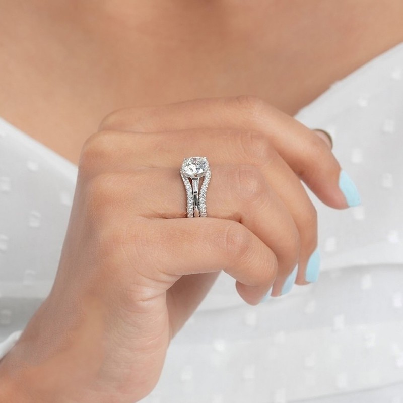 $ 68.43Split Shank Halo Ring 2.20Ct Round Cut Simulated Sapphire 14K Yellow Gold Plated