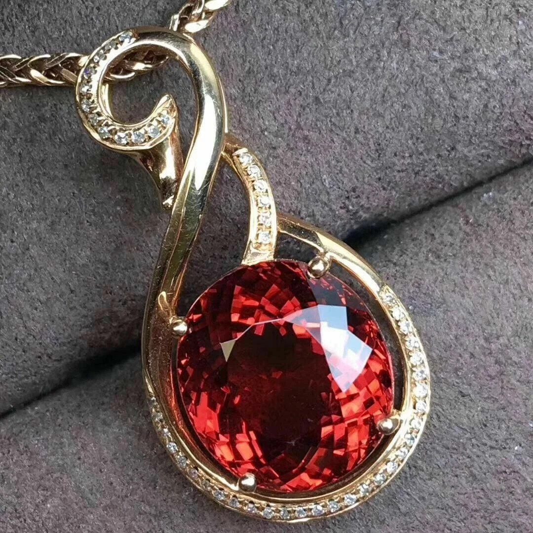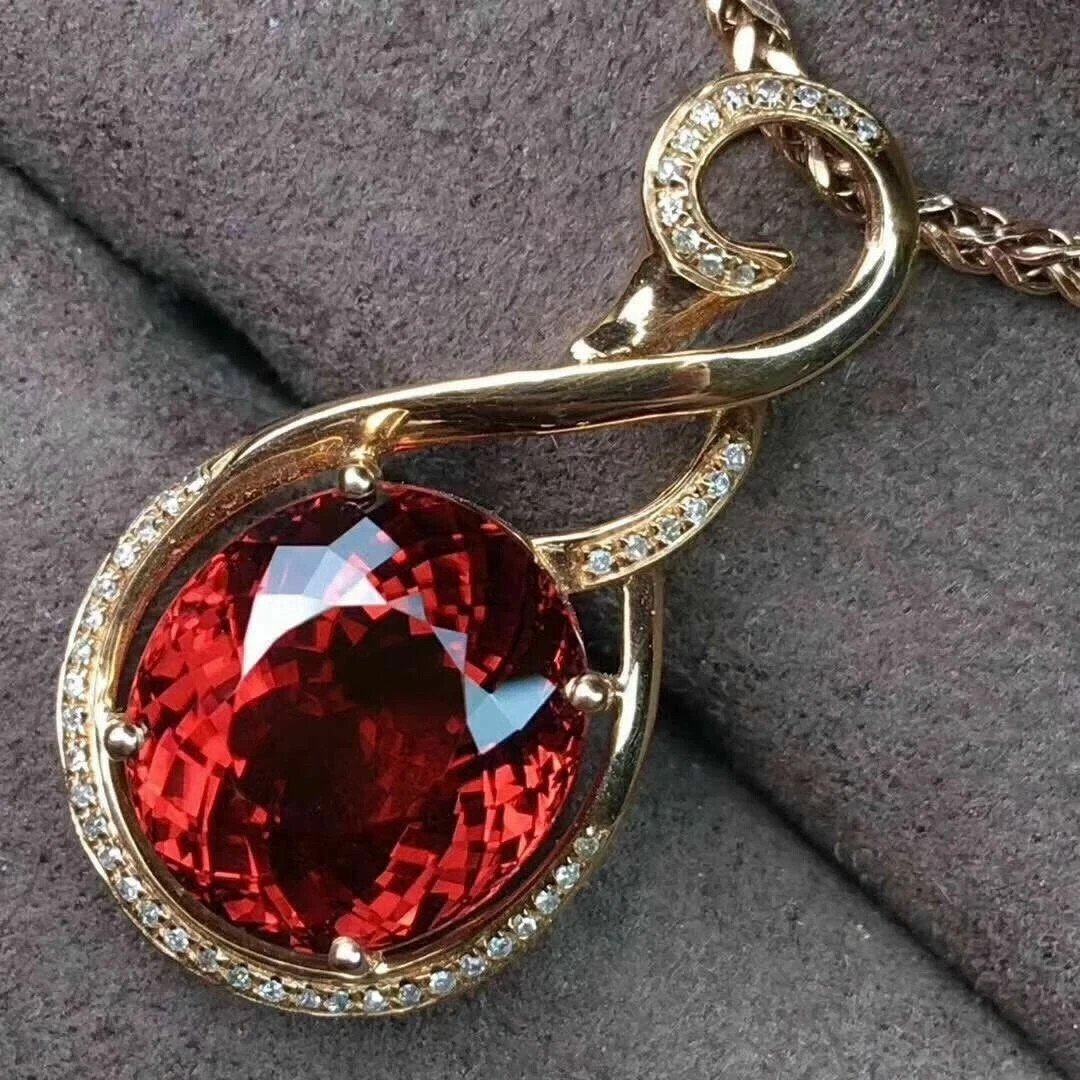 $ 55.782Ct Oval Cut Red Garnet Solitaire Ladies Pendant 14K Rose Gold Finish Free Chain