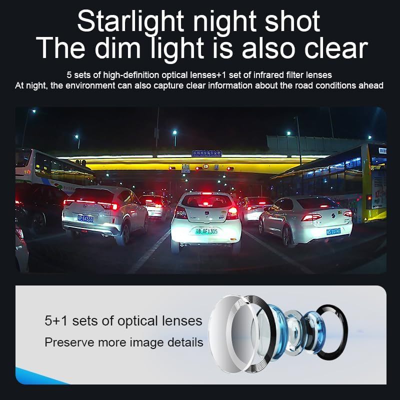 1296P HD Recording: Capture high-quality video footage with crystal clear 1296P resolution. Starlight Night Vision: Enhanced low-light performance ensures clear recordings even in dim environments. 360° Rotation Shooting: Swivel the camera a full 360 degrees to record all angles without blind spots. Radar Induction: Automatically detects motion and starts recording for unattended monitoring. Dual Recording and Mobile Interconnection: Simultaneously record and stream video to your mobile device for convenient remote viewing. Capture life's moments with crystal-clear HD recording with this advanced dash cam. Its 1296P resolution and 140° wide-angle lens ensure you never miss a detail, while the starlight night vision mode allows for clear footage even in low-light conditions. The 360° rotation shooting capability provides a comprehensive view of your surroundings. Stay connected with the radar induction and Wi-Fi features, enabling seamless mobile phone interconnection for convenient access and control. This dual-recording camera is officially authentic, offering reliable performance and peace of mind on the road.