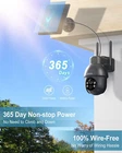 [2K Full HD with 360° PTZ View] The wireless camera features 2K resolution, delivering exceptionally clear and sharp images or videos both day and night. With its PTZ capabilities, including 355° pan, 90° tilt and 4X digital zoom, it provides a full 360° view, ensuring complete coverage and keeping your home fully protected. [Truly Wireless with Solar/Battery Power] ANRAN wireless solar outdoor camera uses a solar panel (included) to power the camera, eliminating the need for wiring. The backup battery ensures uninterrupted footage, even in bad weather or low light. Always ready to capture, providing reliable protection for your home. Notice: this outdoor camera only support 2.4G WiFi, 5G WiFi is not supported. [Color Night Vision & Two-Way Audio] This ANRAN solar camera offers full color night, intelligent light and auto Infrared (up to 50ft) night vision modes. The camera’s built-in microphone and speaker enable clear two-way audio. When it detects a person, you can interact in real time with visitors or potential intruders via your mobile device, allowing you to monitor and communicate from anywhere. [Advanced PIR Motion Detection & Real-Time Alerts] The spotlight security camera illuminates the surrounding area when motion is detected. With advanced motion and AI human detection, you’ll receive real-time alerts, ensuring timely notifications on your phone, wherever you are. Additionally, this wireless outdoor camera offers three alarm options: siren, spotlights, and app notifications. [Local/Cloud Storage and Works with Alexa] ANRAN wireless outdoor security camera supports both local storage via an SD card (up to 128GB, not included) and optional cloud storage with encrypted data and privacy protection. It also integrates seamlessly with Alexa for added convenience. Product Description ANRAN 2K/3MP PTZ Wireless Solar Camera ANRAN Family Security Guardian 1 Local/Cloud Storage 2 Multi-Users Share 3 Works with Alexa 4 24/7 Online Support Is this camera compatible with 5GHz WiFi network? This camera is only compatible with 2.4GHz WiFi networks and does not support 5GHz. If using a dual band network, please ensure that the camera is connected to a 2.4GHz WiFi network. Does it include an SD card? What type of SD card should I use? No, this camera does not include an SD card, you must order it yourself. SD card capacity: 8-128 GB Micro SD, FAT32 format. Why can't this camera continuously 24/7 record? When the camera does not detect object movement, it will automatically enter standby mode to save battery power. Continuously recording the camera's battery power for a long time will accelerate battery consumption. Does the camera automatically track? Does PTZ require manual control? No, the camera does not have automatic tracking, PTZ must use a control application to rotate because it is a battery powered camera. What if the charging of integrated solar panels is slow? You must install it in a place with direct sunlight. If the built-in solar panel charging is slow, you can directly contact our after-sales colleagues and we can provide you with additional solar panels.