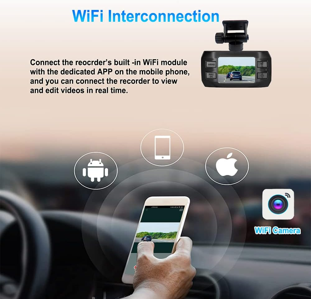 【 2K Car Camera】:The car recorder equipt with 2K(2304x1296) SONYIMX323 camera. It can take high-quality pictures and record clear videos, provide you with a good visual effects 【Support WiFi Interconnection】:Flexible WiFi function and APP can connect the video to the mobile phone in real time.No phone data required and don't need pull out TF card, you can view real-time video, download, edit(clip & add music), and share the video to your phone 【Dual USB Port Car Charger】: Standard USB interface, the cigarette lighter car charger can provide power to the dashcam and mobile phone at the same time 【Easy to Install】Easy installation without tools. Just install the monitor in the middle of the center console, then connect the ports and hide the cables. After plugging in the cigarette lighter car charger, it will start working 【Loop Recording】:The car dash camera will automatically loop the video. The drivers can choose the time for each video recording (off/1/2/3/5 minutes). When TF card is full,the oldest video will be overwritten 【G-Sensor】:Built-in G-Sensor will be activated when your car collides with other vehicles, and dash cam will automatically enter emergency mode. The recorder will record a emergency video and capture a picture. Recording road situation and accident proof, protecting driver’ safe. The videos recorded in emergency mode are protected from being overwritten by normal recorded videos. Note:When TF card video file exceeds 10 GSR-XXX videos, system will delete the earliest one GSR file Product Description Why choose VSYSTO dash cam? This car dash camera is especially designed for cars, aims to improve safety and practicality, provide you with a comprehensive record when you use it. It will be the most considerate companion on your journey! Note : A memory card is NOT included in the packaging. Please use a high-quality 16GB-128GB memory card of C10 and U1. It is a normal heat dissipation phenomenon that the main unit of the recorder will heat up, as long as it does not affect normal use, it will be fine. Press the down button during recording, the recorder will capture a picture. Tips Due to the limitation of the communication protocol, some mobile phone models may not be able to connect to the WiFi of the recorder. If this problem occurs, you can try another phone or turn off mobile data and then connect to WiFi. Solutions for WiFi connection problem on some mobile phones: Android : Firstly turn off your phone’s mobile data and then connect to DVR’s WiFi. If the prompt“ Trust this Network” appears, you must click “YES”, because Android phone forbids mobile data to ensure the recorded video file transferring speed from DVR to mobile phone. IOS : Allows the mobile phone to continue to use the mobile network after connecting to the recorder via WIFI, but it affects the speed of downloading the DVR's video files to the mobile phone. Precautions for WiFi of recorder: (1)The recorder cannot be controlled remotely using the mobile APP. The recorder has a built-in WiFi module, which is used only as a medium to synchronize video and pictures recorded by the recorder. It does not provide mobile data like a home network. (2)The recorder must be turned on to connect to WiFi. The connection distance between the mobile APP and the recorder WiFi should not exceed 16.4ft, otherwise the connection may be disconnected. If need camera bracket, please search for ASIN: B0BTYK8C7R ; If need power cable, please search for ASIN: B0BTYKMK4F ; Specification Model M1 Display Size 1.5 Inch Video Resolution(Optional) 2K 30fps; 1080P 30fps; 720P 30fps; 720P 60fps; WiFi Module Built-in G-Sensor Built-in Loop Recording Support Video Format MOV (H.264) Memory Card(Not Include) Support up to 128GB, C10 and U1 2K Resolution 2K dash cam ensures high-definition recording and can provide you the best visual experience. Built-in WiFi Module Using the VSYSTO dedicated App "WiFi Camera" could connect to camera , no need for mobile cellular data, you can view real-time video, download video, edit (clip & add music), and share the video directly on your phone without removing the memory card. 160° Wide Angle 160° wide-angle lens, picture is clearly visible, easily covering multiple lanes, so that there is no blind spot in the front of the vehicle, and the field of vision is wide. Dual USB Ports Standard USB interface, the cigarette lighter car charger can provide power to the dashcam and mobile phone at the same time. Built-in G-Sensor Automatically capture accidental driving accidents in time and save collision video files, effectively protect your legal rights.Video files recorded in emergency mode are protected from being overwritten by normal recording video. Note: When saved video file of camera exceeds together 8 GSR-XXX videos,system will delete the earliest one GSR files. Loop Recording With loop recording enabled, users will have the option to record videos in loops of off/1 / 2 / 3 / 5 minute video files. If the TF card is full, the earliest recorded video will be overwritten, but the locked videos will not be overwritten. If off is selected, the recorder will stop saving video when the card is full.