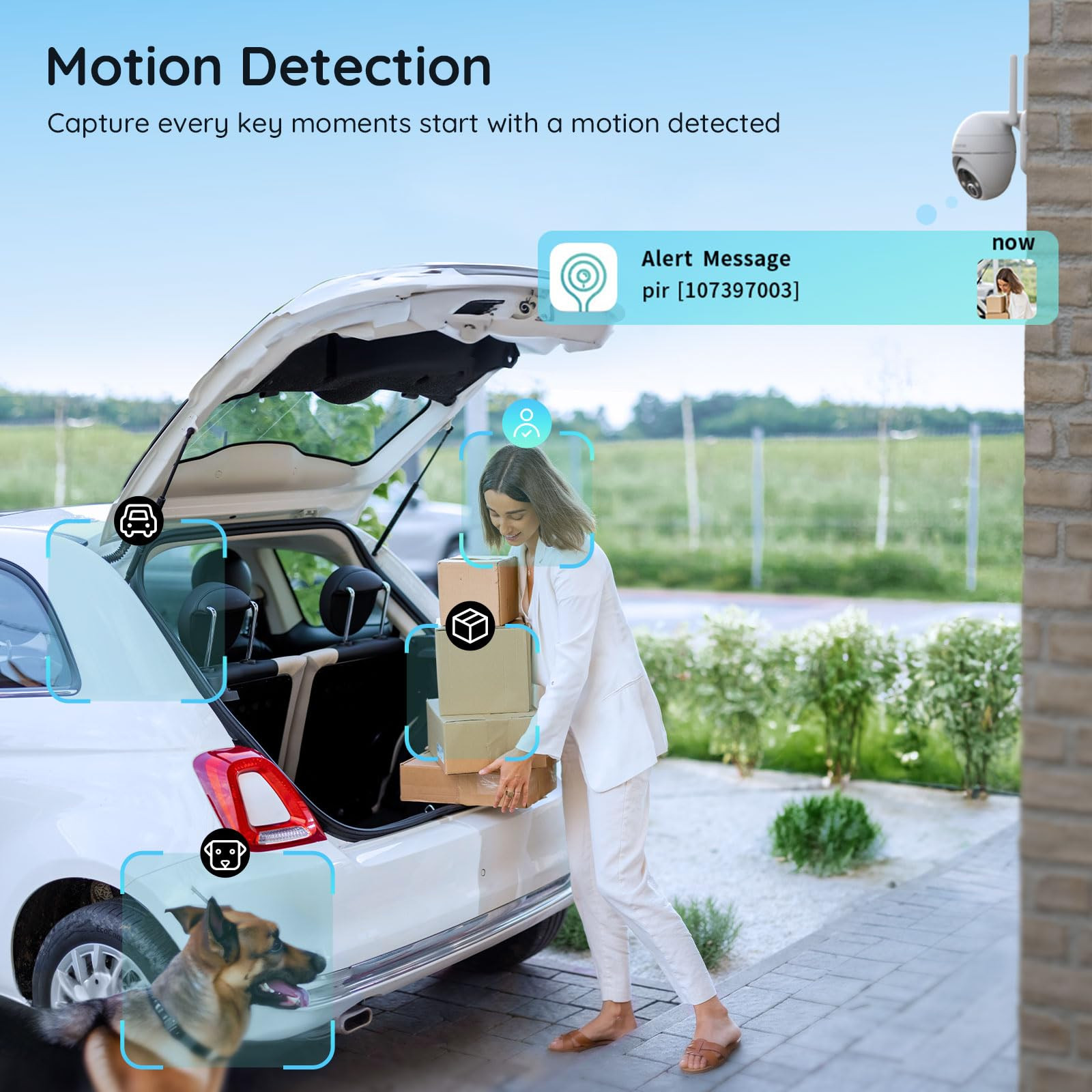 【15000mAh & Solar Powered & 100% Wireless Installation & 4dbi Dual Antennas】 wireless outdoor security camera, equipped with a high-efficiency solar panel and 15000mAh rechargeable battery, can bring you 365-day non-stop protection. The 4dbi dual antenna ensures that solar security camera has stable network reception, and quickly connects to 2.4Ghz WiFi from a longer distance. The entire installation process only takes a few minutes, no need to install any power cords or Ethernet cables