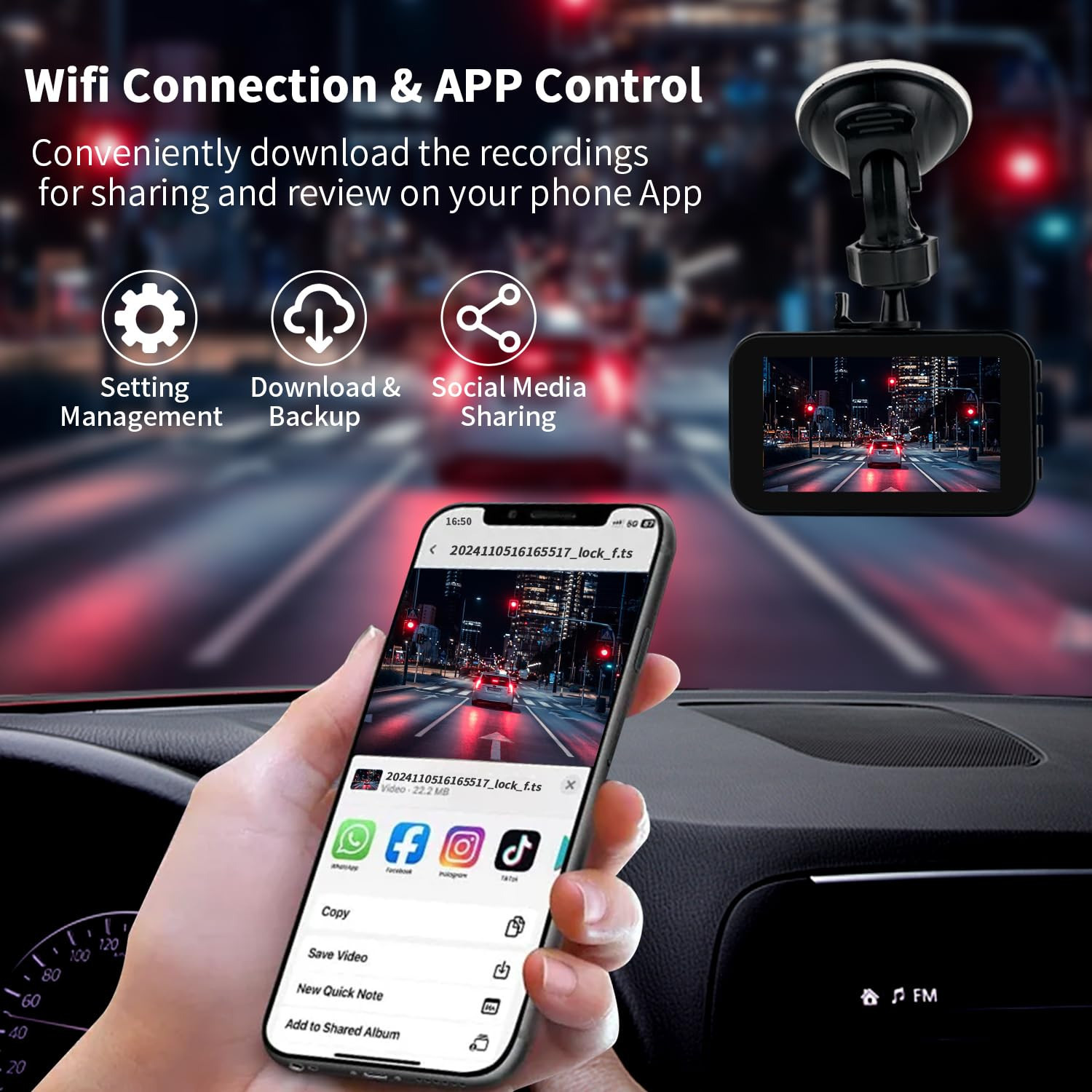 2K+1080P Dual Dash Cam:Capture images from front and rear cameras at the same time. The front camera records at 2160*1440P@30fps and the rear camera records at 1920*1080P@30fps, capturing every detail on the road and ensuring clear recording of the road conditions in front and behind. To minimize blind spots,It has the front wide angle of 170 degree and rear wide angle of 160 degreewhich,allowing you to see clearer images from any angle Built-in WiFi & APP Control:This 2K Dash Cam Front and Rear supports the free APP for Android or iOS smartphones.Easily access the recorded video, you can also download and share the recorded travel scenery and exciting moments to your friends and family directly from your smartphone in the app. Loop recording and,3-Axis Gravity Sensing:This Dash Camera for Cars, can automatically overwrite the oldest video with the latest video, achieving seamless loop recording even when the SD card is full,When the car camera ,3-Axis Gravity Sensing detects a sudden collision, it will lock and save the collision video, locking it as important evidence and not being overwritten. Superior Night Vision:Driving recorder adopts an exceptional optical lens with an ultra-large F1.5 aperture and 6 layers, and is equipped with HDR/WDR technology to clearly capture important details even in low light conditions. Excellent technical service team: If you encounter any problems with installation, operation or connection errors, you can contact us, we are ready to help you solve any problems, we will get back to you as soon as possible within 24 hours.