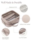 Clear Cosmetic Bag 2 Layer Travel Toiletry Bag Clear Makeup Bag Case with 4 Compartments, Transparent Travel Bag for Toiletries, Large Toiletry Bag for Women Cosmetic Case (Stone) Product Details Color: Stone Size: L Brand: Oaque MPN: TB-2-4 UPC: Does not apply EAN: Does not apply Product Dimensions: 8.7 x 4.5 x 3.5 inches Item Weight: 1.15 pounds Department: Unisex Adult Manufacturer: Oaque Country of Origin: China Item model number: TB-2-4 4 Separate Compartments: The clear make up case features two small zippered pockets and two large zippered compartments that offer ample space for your travel essentials. A great option for separating makeup from toiletries. Large Makeup Case: With dimensions of 10 x 8 x 5 inches (Capacity: 6.5 Liters), this travel make up bag is spacious and roomy to hold all of your full-sized skin care, beauty, or makeup products. Perfectly fit in a suitcase and a big travel bag. Well Made Cosmetic Bag: Made of premium saffiano faux leather and clear PVC, the toiletry case is scratch resistant, waterproof and easy to clean. This clear toiletry bag boasts dual stainless steel zippers and a lay-flat handle for added durability and convenience. See Through & Easy Access: The cosmetic travel case is designed with clear viewing windows and wide opening, making it easy to locate your items and access them quickly. Versatile Travel Bag: This women toiletry bag keeps all of your gear well-organized during extended trips, on-the-road, camping or domestic flights. Additionally, the clear vanity bag is a perfect gift for friends or family members who enjoy traveling.
