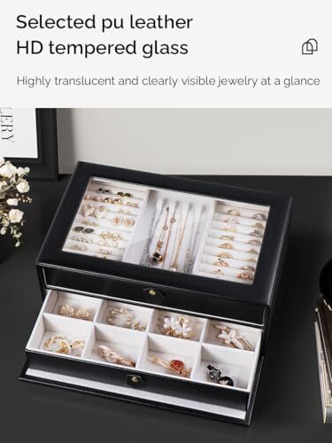 Menu 1. We require immediate payment. 2. We currently accept payment via eBay managed payments only. 3. Once payment is cleared, we will dispatch your shipment within 1-3 business days. Please refer to the "Shipping" tab for more information regarding shipping speed to your destination. Jewelry Box for Women, 2 Layer Double Drawer Jewelry Organizer Glass Lid, Large Jewelry Display Case for Necklace Bracelet Earrings Rings Storage for Dresser, Black Product description French retro style: draws on the essence of French classical architecture and decorative arts using arches of luxury minimalist design, elegant and romantic, exquisite craftsmanship, to create a romantic atmosp of the palace-style Transparent windows make it easier to find your favorite jewels before you open it. You can use it in many situations such as living room, bedroom, wardrobe, jewelry store, never messy dressing table anymore. Durable Material&Perfect Size: Made of premium PU leather, great texture and stain resistant, with soft velvet lining, protect your jewelry from dust and scratch. Attractive surface, durable quality. Dimension: 11.81x 7.87 x 4.33 inch (L x W x H) . Multifunction Storage&Double Drawer: Double layers jewelry organizer box contains grids with different size to store all kinds of jewelries or cosmetics. Dividers in the drawers all can be removed to meet your different needs. Best Gift Choice: Jewelry display box will be a wonderful gift for Valentine's Day, Mother's Day, Thanksgiving, Christmas gift for her, birthdays and weddings for mom, girlfriend, colleague or someone special in your life. PLEASE MESSAGE US IF YOU HAVE ANY OTHER QUESTIONS, AND MANY THANKS FOR READING ALL OF THIS. Copyright ©#. All Rights Reserved.