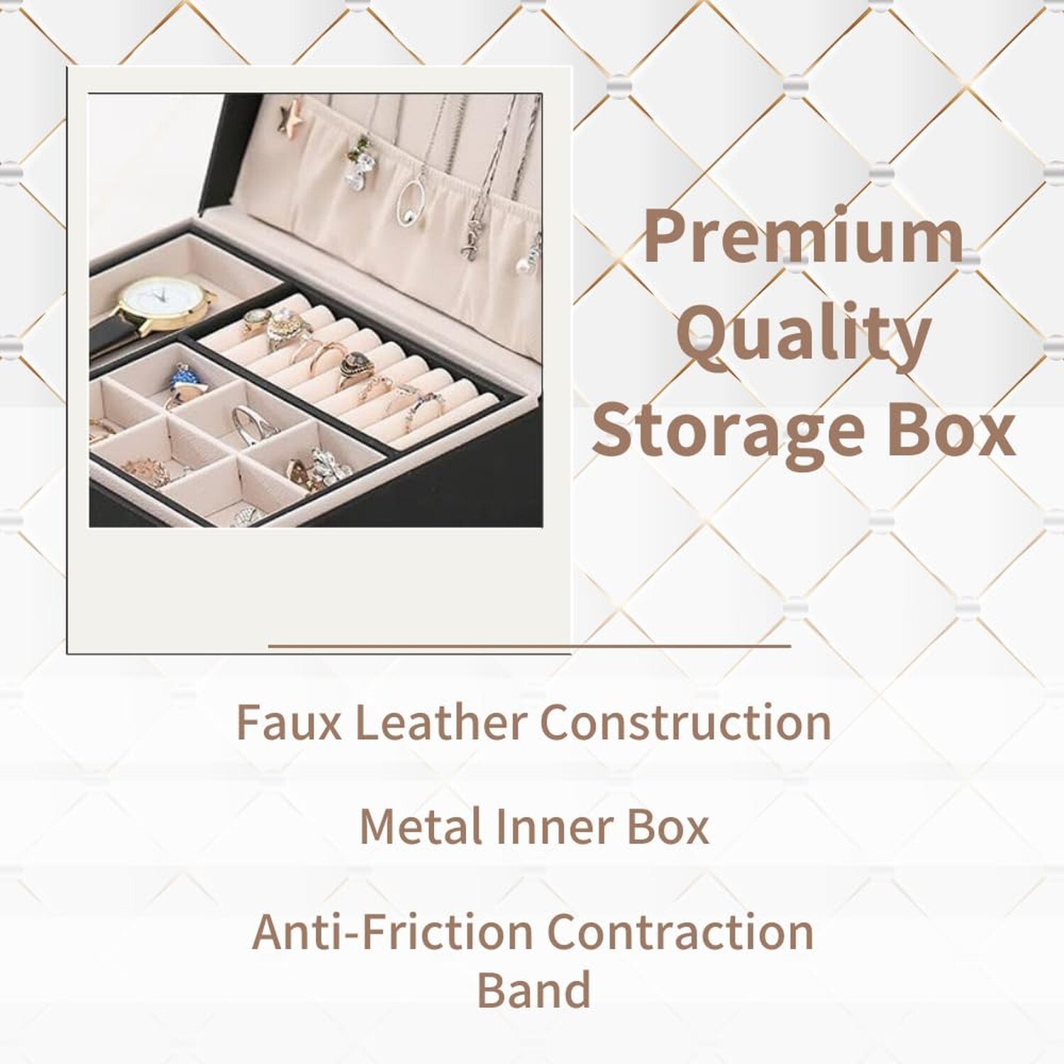 2 Layer Jewelry Box, Jewelry Holder Organizer with Jewelry Organizer Drawer, Large Jewelry Boxes & Organizer with Earring Organizer, Lockable Jewelry Holder, Teacher Appreciation Gifts Product Details Color: Jewellery Box (Pink) Brand: NOSCOMP Material: aluminium, bamboo, aluminium Style: Lock Special Feature: Lockable Recommended Uses For Product: Ring Product Dimensions: 9.84"D x 6.69"W x 3.54"H Target Audience: Women Shape: Rectangular Occasion: Engagement, Mother's Day, Wedding, Birthday Color: Jewellery Box (Pink) Brand: NOSCOMP Material: aluminium, bamboo, aluminium Style: Lock Special Feature: Lockable Recommended Uses For Product: Ring Product Dimensions: 9.84"D x 6.69"W x 3.54"H Target Audience: Women Shape: Rectangular Occasion: Engagement, Mother's Day, Wedding, Birthday Mounting Type: Freestanding Finish Type: metallic Inner Material: Metal Closure Type: Lock Number of Drawers: 3 Item Weight: 0.3 Kilograms Number of Compartments: 15 Manufacturer: Noscomp Part Number: noscomp_ob Item Weight: 10.6 ounces Item model number: noscomp_ob Finish: metallic Number Of Pieces: 1 Special Features: Lockable Included Components: Compartments Included Batteries Included?: No Batteries Required?: No Date First Available: December 7, 2022 Trendy jewellery organiser box displays your small jewellery, including necklaces, bracelets, earrings, rings, and more; Keeping all in one place, ideal for travelling and daily use Soft lining inside helps to protect your precious items from scratches meanwhile offering you a comfortable touch Economical Design - This small but large capacity case with double layer, provides stud plate, necklace hooks, ring groove and adjustable storage space, can be held most of your jewellery Exquisite small jewellery display case with considerate design makes it an ideal gift for jewellery lovers in your life, especially suitable for Birthday, Christmas, Valentine's Day, Wedding Day, Mother's Day, Anniversary Day and so on Carefully Protected Jewellery : resistant, waterproof, non-deformable and easy to clean; the soft Inner lining can protect your jewellery from scratches.