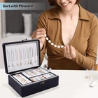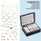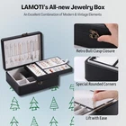 2-Layer Jewelry Box for Women, Floating Effect Leather Jewelry Organizer with Detatchable Tray for Rings, Earrings, Necklaces & Bracelets (Black) Product Details Color: Black Brand: LAMOTI MPN: LVJB-BK UPC: 653555046148 EAN: 0653555046148 Color: Black Brand: LAMOTI Material: Faux Leather Style: Vintage Special Feature: Lockable Product Dimensions: 7.4"D x 9.3"W x 3.4"H Target Audience: Women Shape: Rectangular Occasion: Mother's Day, Homecoming, Valentine's Day Inner Material: Velvet Target Audience: Women UPC: 653555046148 Brand Name: LAMOTI Manufacturer: Saiwel Material Type: Faux Leather Inner Material: Velvet Item Dimensions D x W x H: 7.4"D x 9.3"W x 3.4"H Shape: Rectangular Color: Black Occasion: Mother's Day, Homecoming, Valentine's Day Style Name: Vintage Closure Type: Buckle Number of Items: 1 All-new Design: Made of premium PU leather, the LAMOTI's jewelry box comes with rounded corners and a floating base which make it stand out from others, ensuring a truly bespoke piece that exudes luxury and refinement. Multi-Compartment Layout: Includes various slots, trays, and compartments to organize rings, earrings, necklaces, and bracelets with ease. Floating Effect: The jewellery organizer Features an innovative and stylish design that creates a "floating" appearance, making it a visually striking centerpiece for your vanity or display. Bull Clasp Closure: Equipped with a secure and stylish bull clasp, combining functionality with a unique vintage design element that allows you to open and close the jewelry holder with pleasure. Soft Lining Interior: The jewelry organizer features a claimond veins interior to safeguard delicate items, preventing damage or wear during storage. Perfect Gift Idea - We believe no one can resist this stylish and practical jewelry box that effortlessly lends a more sophisticated look to home space - making it an ideal gift for girls & women.