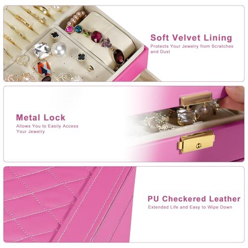 Return Policy Fast Delivery Trusted seller 2-Layer Jewelry Box for women, jewelry organizers and storage with Removable Jewelry Tray, vintage quilted top Lockable Jewelry Holder Gift Idea Rose Red Product Description Beautiful and Useful Jewelry Organizer Box: The design features a quilted pattern on the top and offers sufficient space for storing jewellery. The leather is of a high quality, with a smooth and sleek finish. Pull-out drawer Jewelry Box: The double-layer jewelry drawer offers ample storage space, with hooks, slots and compartments of varying sizes to accommodate a range of jewelry items Versatile Use: Modern jewelry boxes & organizers for vanity tables, cloakrooms, and more. Organise pins, necklaces, rings, bracelets, and other accessories Maximise Your Space: Our jewelry box keeps your jewellery tidy and at arm's reach. With a well-organised design, it lets you easily find your favourite pieces Ideal Gift Idea: This gorgeous jewelry box is great gift for any special occasion. Its original design and high-quality craftsmanship make it a thoughtful and beautiful present for Valentine's Day, Mother's Day, Christmas, birthdays, anniversaries or for yourself Shipping Returns Payment Shipping Shipping is FREE to all addresses other than APO/PO boxes in the lower 48 states. All our stock ships from US-based warehouses. Shipped via USPS or UPS (depending on location and package weight) Unless stated otherwise, all orders will ship within 24-72 hours of your payment being processed. Check our feedback to see the great reviews of FAST shipping we offer. Returns Seller does not accept returns Payment We currently accept payment via eBay managed payments only. Once payment is cleared, we will dispatch your shipment within 1-3 business days. Please refer to the "Shipping" tab for more information regarding shipping speed to your destination.