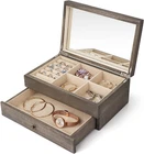 Store New Arrivals Add to Favorite View Feedback Contact Jewelry Box Organizer for Women, 2 Layer Large Jewelry Storage Case, Rustic Wooden Jewelry Box with Mirror & Ring Tray for Necklace Earring Bracelets Rings, Vintage Style (Weathered Grey) Description Style Rustic Number of Items 1 Material Type Wood Finish Types High Gloss Jewelry Storage Type Jewelry Box Number of Compartments 5 Target Audience Women, Girls Product Dimensions 6.2"D x 9.7"W x 4.2"H Material Wood Number of Drawers 1 Closure Type Latch Item Weight 2.11 Pounds Occasion Mother's Day, Christmas, New Year, Wedding, Valentine's Day Special Feature 2 Layer Design, Jewelry Organizer, Sturdy, Large Capacity, Mirror Mounting Type Table Top Color Torched Wood Item Dimensions D x W x H 6.2"D x 9.7"W x 4.2"H Shape Rectangular Recommended Uses For Product Necklace, Ring, Watch, Earring, Bangle Inner Material linen cloth Style Name Rustic Size 2-Layer Vintage Style, Natural Wood ❤CLASSIC JEWELRY BOX: Jewelry organizer box is made of solid wood and finish with carbonized black into a rustic style, sturdy and durable to stand heavy jewelry cosmetics. Linen cloth-covered inside keeps your jewelry well against dust, scratches, damages. Metal delicate handle highlights retro beauty. Any detail is specially designed for organizing jewelry. ❤MULTIFUNCTIONAL JEWELRY ORGANIZER: 2-Layer jewelry box provide large space and keep your jewelry well organized, 5 divided compartment and a big pull-out drawer jewelry box, multiple compartments for storing rings, earrings, studs, necklace, brooches, watches and other keepsakes.This beautiful Jewelry Organizer is perfect for eliminating cluttering and tangling. ❤COMPACT & GENEROUS DESIGN: This jewelry box with 2- Layer design, make reasonable use of jewelry space via your habit or interest, create large capacity and different layout. The large mirror in the heart of the jewelry box helps you save valuable time in the morning before leaving for a long day's work. ❤IDEAL GIFT FOR LOVED ONE: Whoever your Loved one's Mom, Wife, Daughter, or Girlfriend for Valentine's Day, Birthday, Mothers' day, Christmas, Anniversary Day, or Wedding. Meangood jewelry box is a ideal choice. we can be sure this will be the most practical and memorable gift they have ever received. ❤SATISFACTION SERVICE: Portable jewelry case is a breeze to pack and sits beautifully on your dresser, nightstand, bathroom counter or vanity, saves lots space to make your room looking more neatly. In case any problem or you are not satisfied, please tell us without hesitation. Product Description Have you upset that can't find a matching pairs of earrings? Have you run late for an party because of searching for jewelry? Don't waste time for lost or tangled earrings! Now with Meangood 2 Layer Large Capacity jewelry boxes, you can find your beautiful jewelry immediately. This rustic jewelry organizer is designed with a large built-in mirror that helps you save valuable time in the morning before leaving for a long day's work. Top layer with 4 open compartments and 7 ring grooves for storing earrings, rings, bracelets, and bangles. This beautiful Jewelry Organizer is perfect for eliminating cluttering and tangling. A large pull-out drawer for easier picking of your treasured jewelry. The various compartments keep your jewelry away from getting messed up; easily different sizes of jewelry, even necklaces, bangles, and big earrings like hooped earrings. CLASSIC JEWELRY BOX & IDEAL GIFT Jewelry Box for Women, Jewelry Organizer Boxes is built with solid wood, exquisite craftsmanship, attractive appearance. Storage Earrings Rings Necklace Bracelet, Farmhouse Style Jewelry Holder. This elegant jewelry storage case is perfect gift for your friends, girlfriend, wife, mother or other loved female. On Valentine's Day, Birthday, Mothers' day, Christmas, Anniversary Day, New Year or Wedding. ABOUT US We offer the best prices around on high quality products. Our E-store includes media such as books, movies, music and games while offering electronics, toys, sporting apparel, clothing, tools, general home, garden items and more. SHIPPING We are always working hard to ensure your package arrives as soon as possible. Please understand that some factors like weather, high postal traffic, and the performance of shipping companies are outside of our control. We offer free shipping to the lower 48 states and ship within 2 business days of payment, usually sooner. We do not accept P.O. Boxes. Please provide a physical address. RETURNS We offer a 30-Day Return Policy on items which you are not completely satisfied with. You have the option for a full-refund or an exchange of the item. No returns are available on items shipped outside of the USA. PAYMENT We accept PayPal. CONTACT US This page content is yet to come Please ad us to your favorite seller and visit again later Thank You CUSTOMER SATISFACTION We try our very best to make sure every customer is completely satisfied. If there's a problem, message us! We're happy to help.